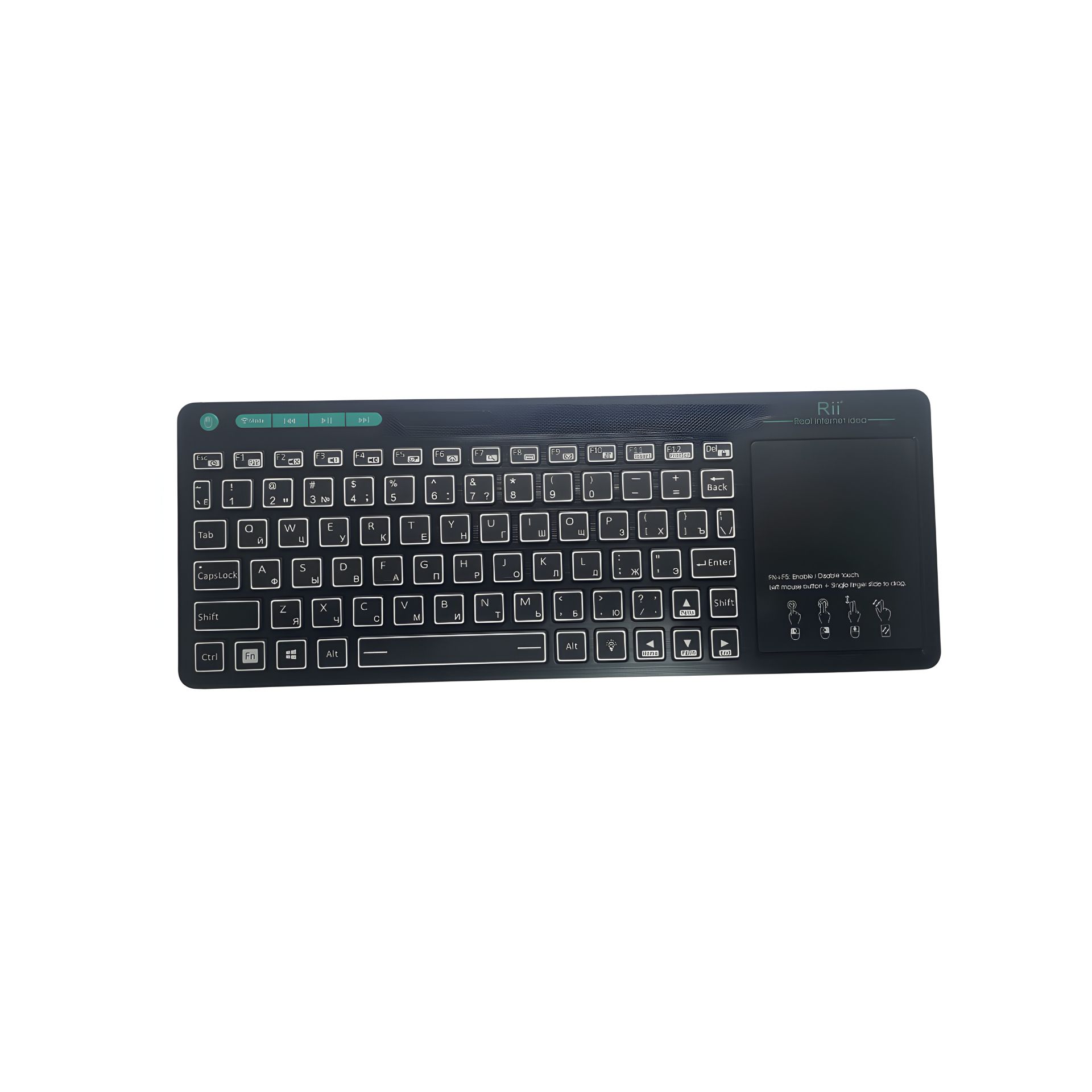 Беспроводная мини-клавиатура 2,4G/Bluetooth с подсветкой и мультисенсорным управлением Rii K18S (EN/RU)