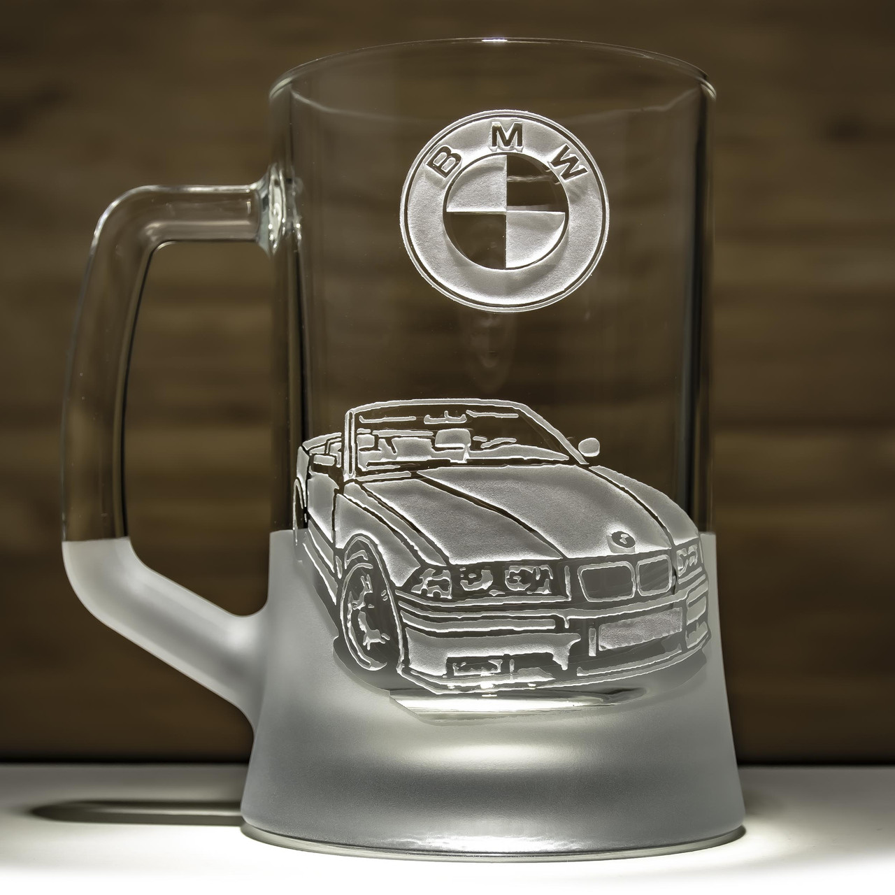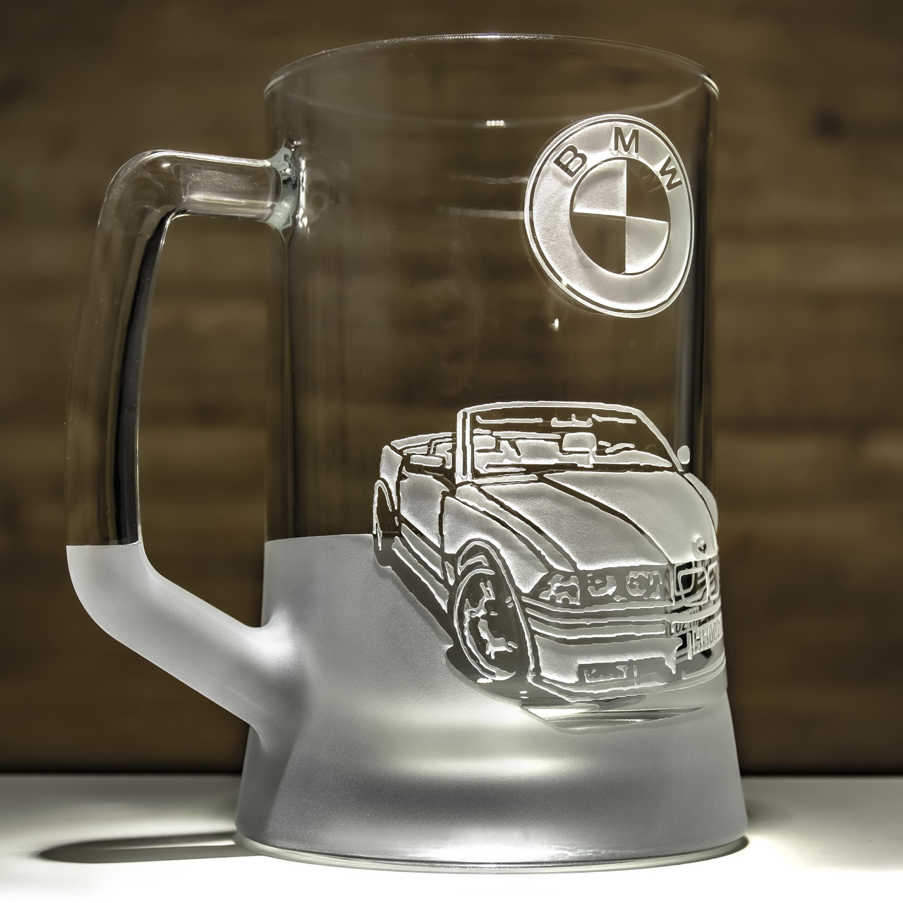 Стеклянная кружка для пива с ручной механической гравировкой BMW E36 Series 3 купе кабриолет в подарочной коробке