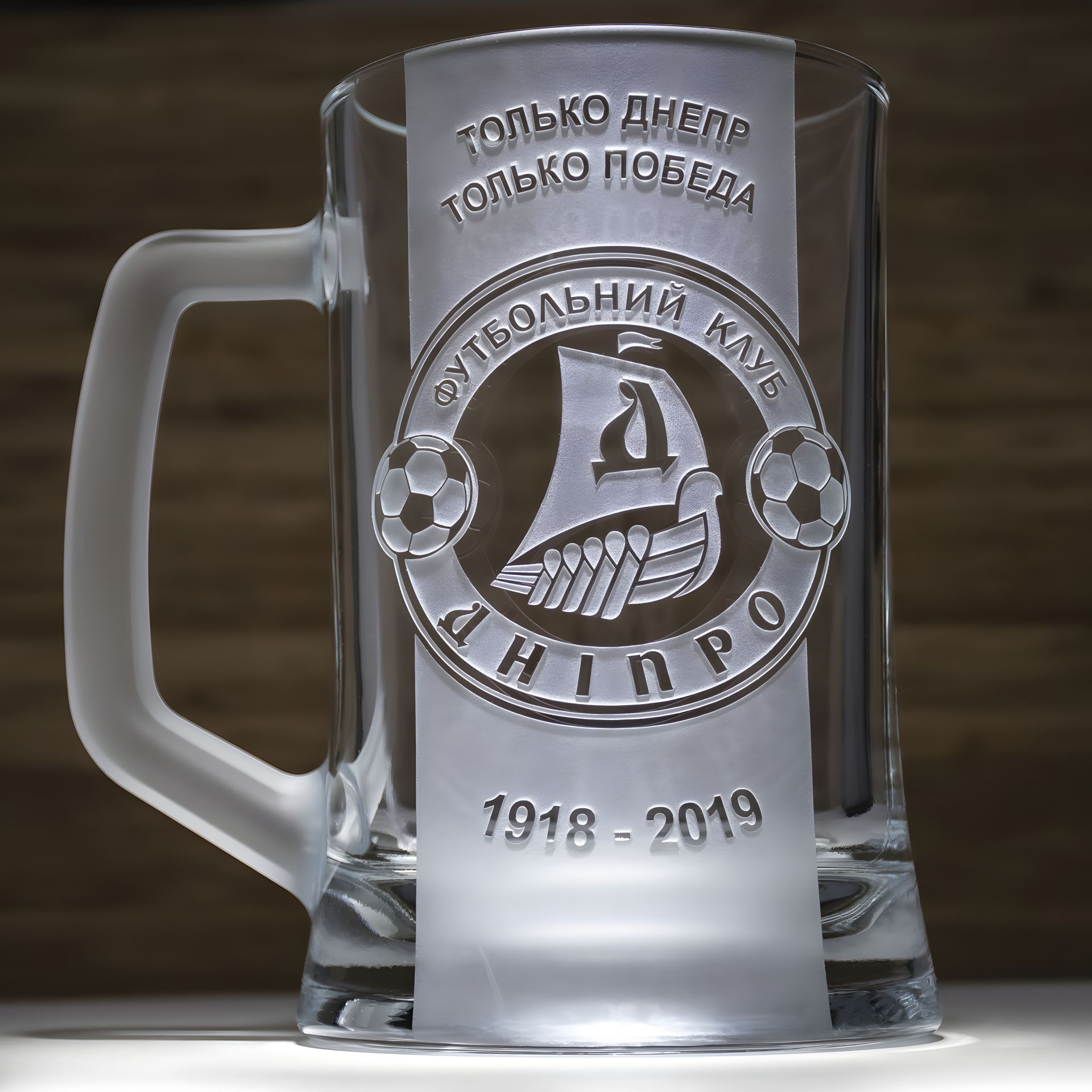 Пивной бокал с гравировкой ФК Днепр и матовой ручкой