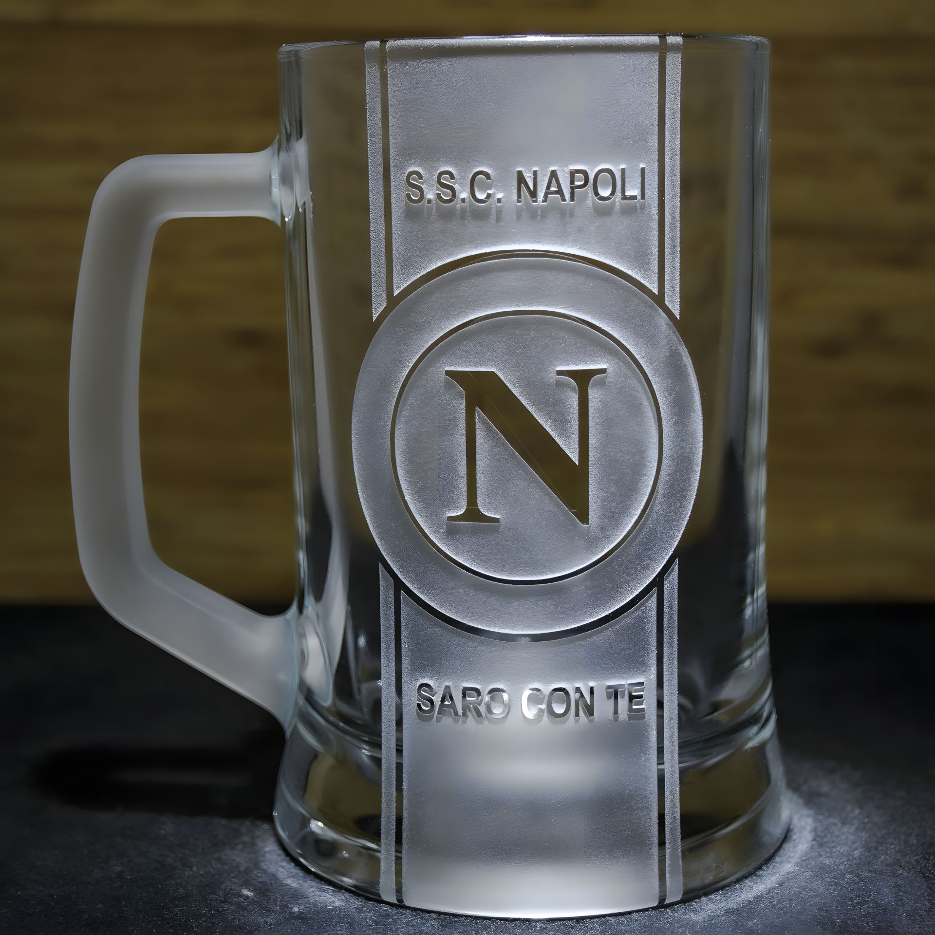 Пивной бокал с гравировкой ФК Наполи, матовая ручка