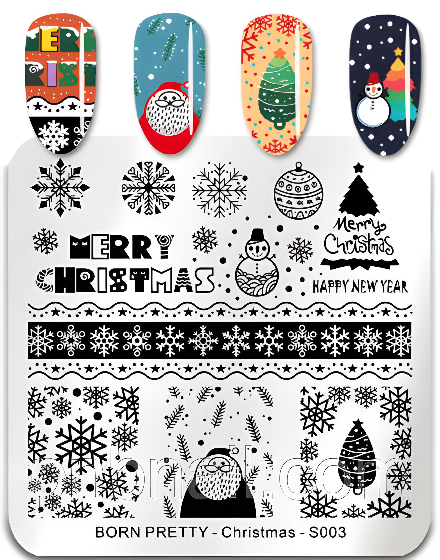 Диск для стемпинга BORN PRETTY Christmas c новогодними риснуками, с помощью которых Вы сможете создать красивый маникюр на ногтях , легко и быстро
