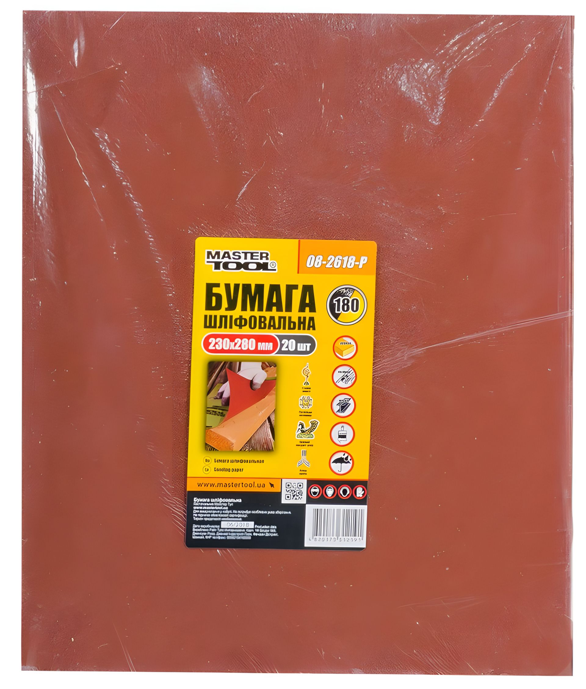 Водостойкая шлифовальная бумага Р180 230×280 мм 20 шт MASTERTOOL 08-2618-Р