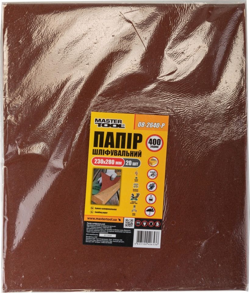 Бумага шлифовальная водостойкая Р400 230×280 мм 20 шт MASTERTOOL 08-2640-Р