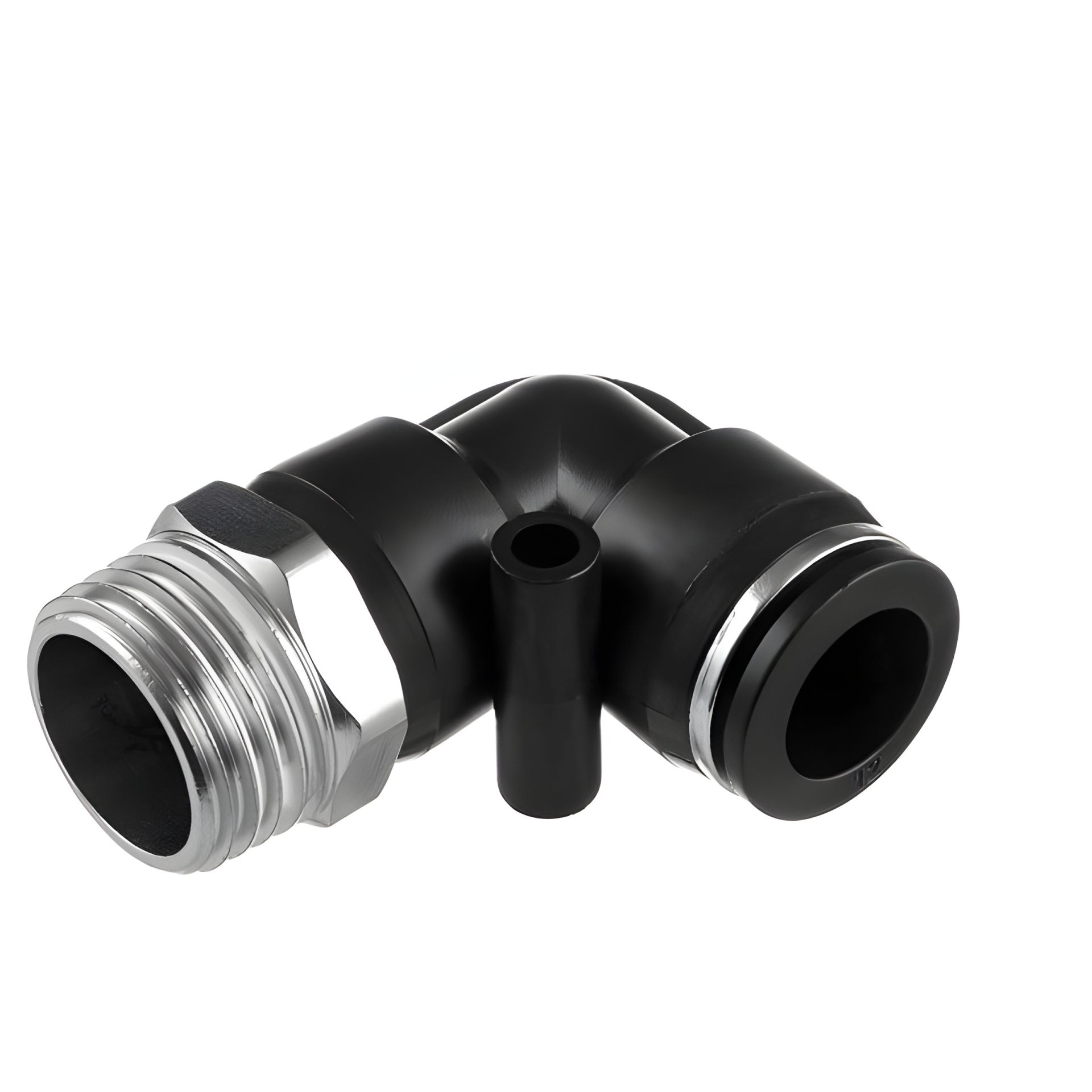 Цанговое соединение L-образной формы применяется при создании пневматических магистралей и для монтажа пневмосистем. Обеспечивает полностью герметичное соединение различных пневматических шлангов без повреждения их поверхности (PU, PE, PA) - полиуретановых, полиэтиленовых, полиамидных и пр.