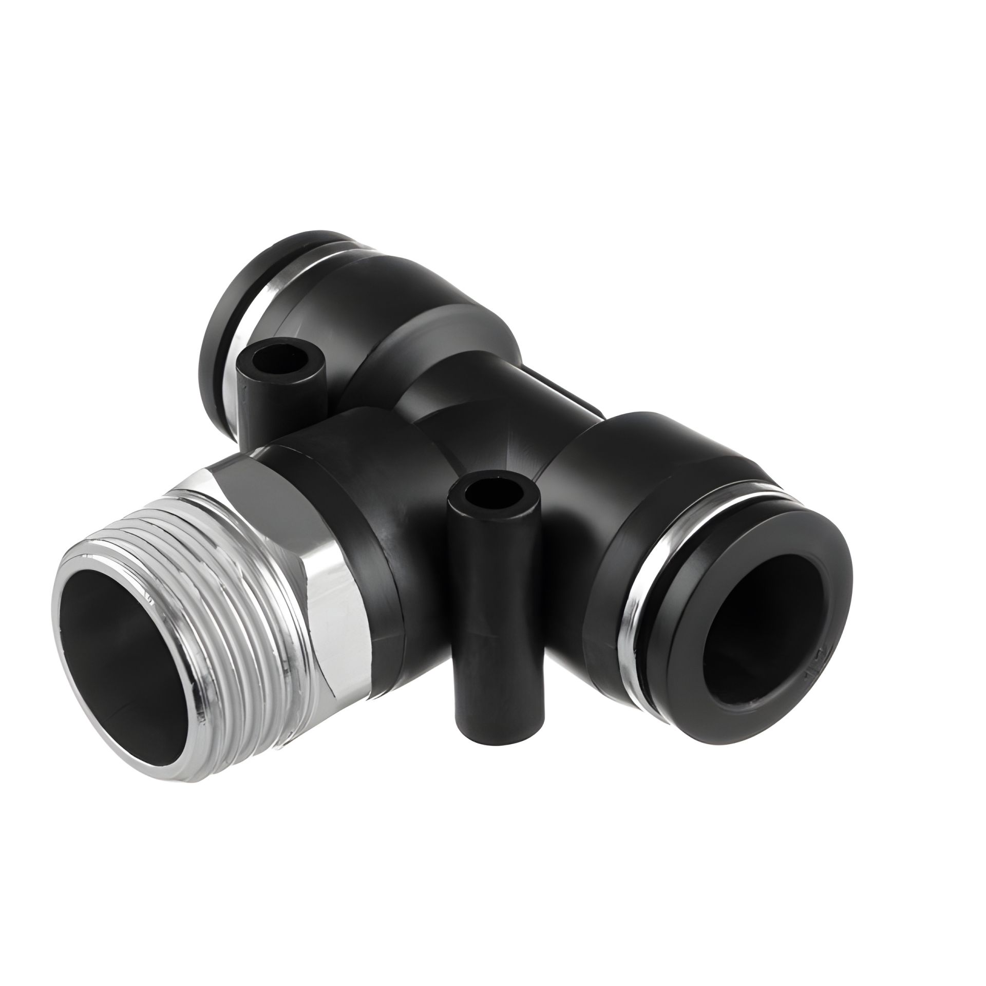 Цанговое соединение T-образной формы применяется при создании пневматических магистралей и для монтажа пневмосистем. Обеспечивает полностью герметичное соединение различных пневматических шлангов без повреждения их поверхности (PU, PE, PA) - полиуретановых, полиэтиленовых, полиамидных и пр.