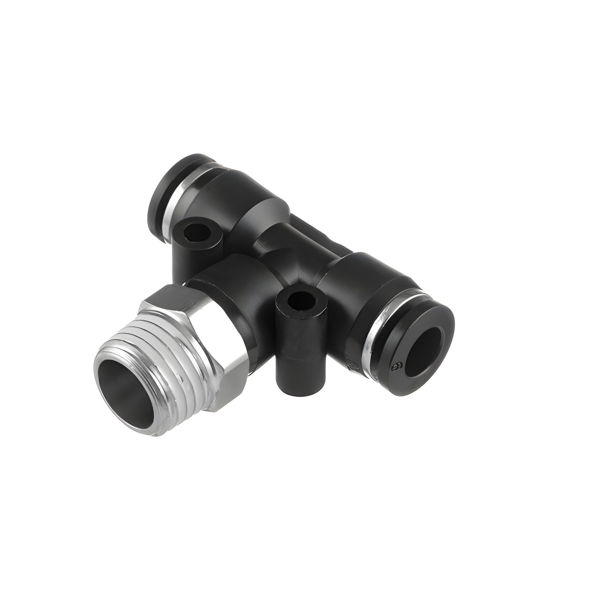Цанговое соединение T-образной формы применяется при создании пневматических магистралей и для монтажа пневмосистем. Обеспечивает полностью герметичное соединение различных пневматических шлангов без повреждения их поверхности (PU, PE, PA) - полиуретановых, полиэтиленовых, полиамидных и пр.