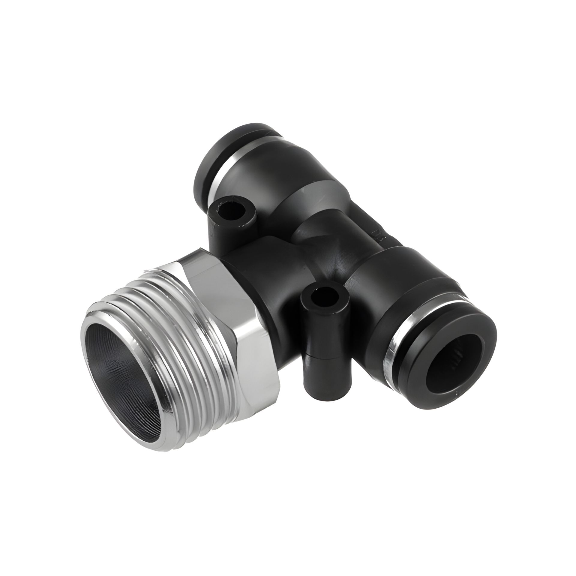 Цанговое соединение T-образной формы применяется при создании пневматических магистралей и для монтажа пневмосистем. Обеспечивает полностью герметичное соединение различных пневматических шлангов без повреждения их поверхности (PU, PE, PA) - полиуретановых, полиэтиленовых, полиамидных и пр.