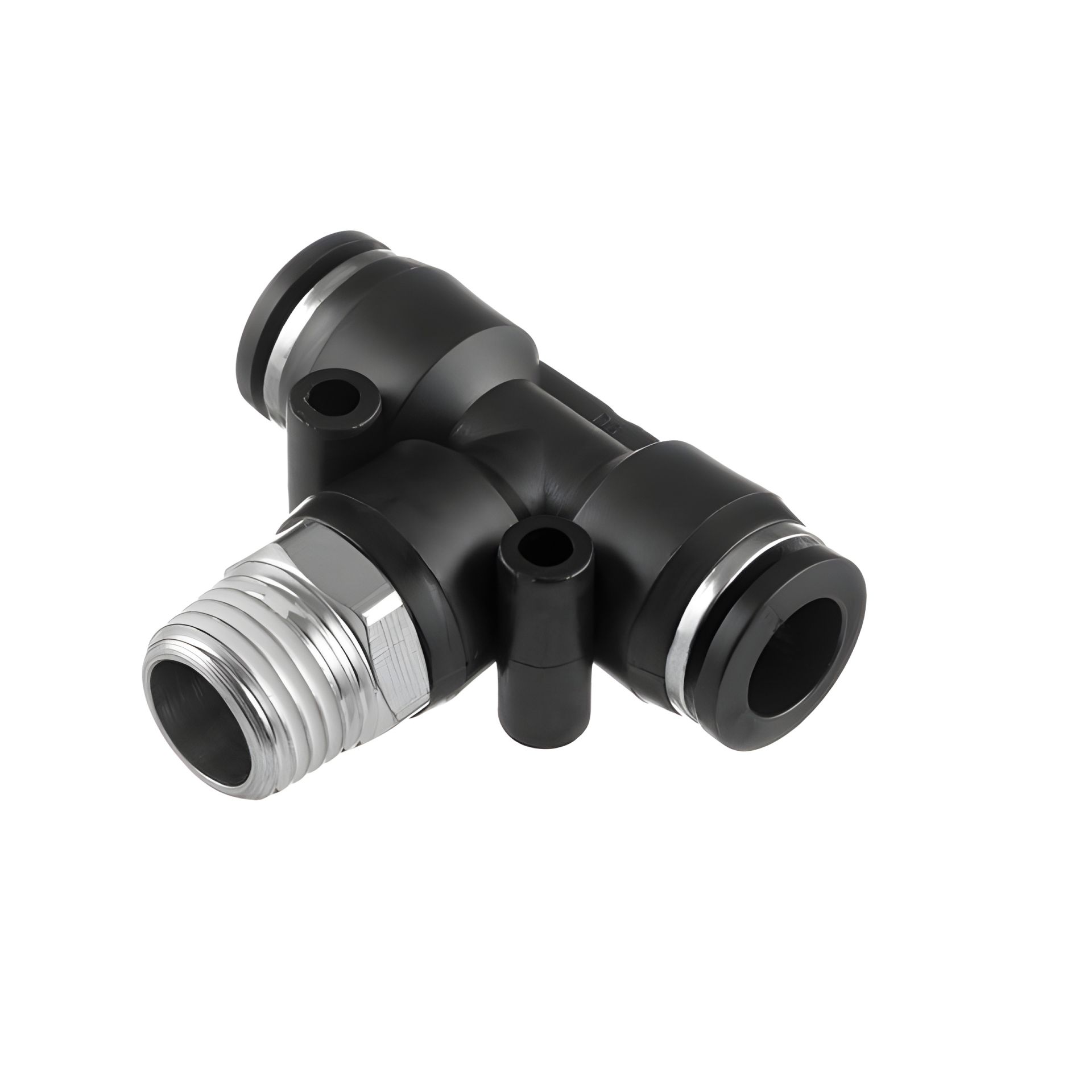 Цанговое соединение T-образной формы применяется при создании пневматических магистралей и для монтажа пневмосистем. Обеспечивает полностью герметичное соединение различных пневматических шлангов без повреждения их поверхности (PU, PE, PA) - полиуретановых, полиэтиленовых, полиамидных и пр.