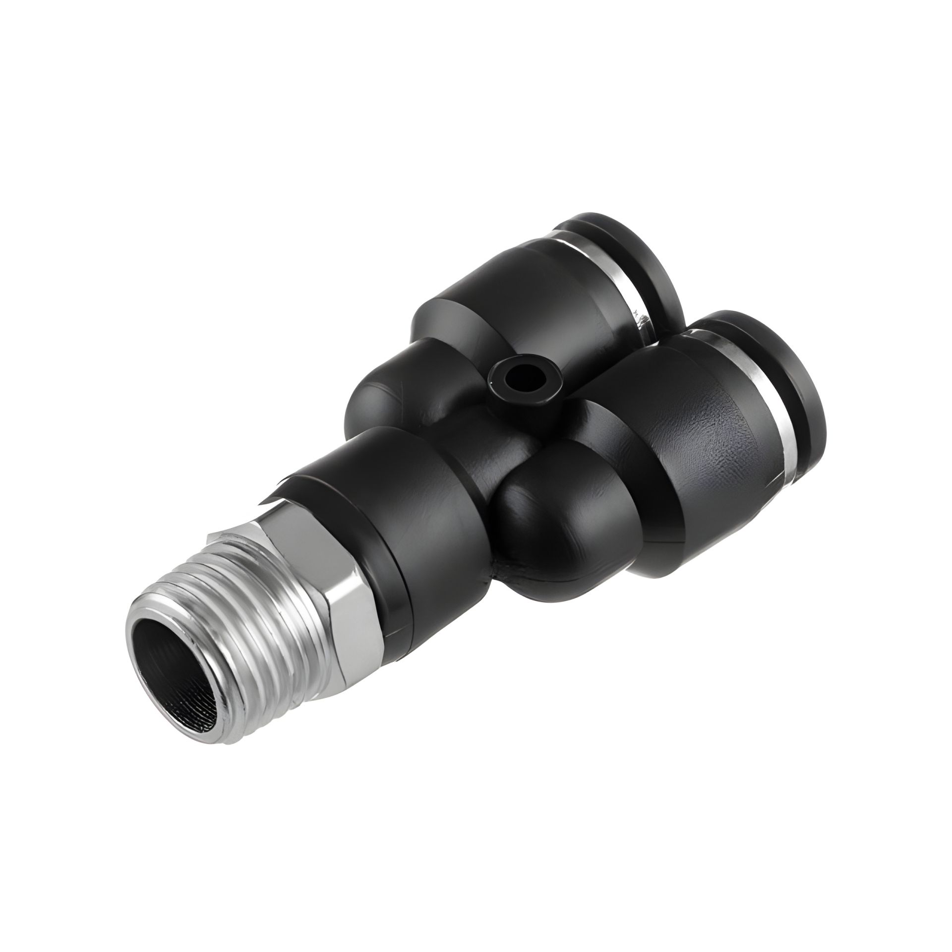 Цанговое соединение Y-образной формы применяется при создании пневматических магистралей и для монтажа пневмосистем. Обеспечивает полностью герметичное соединение различных пневматических шлангов без повреждения их поверхности (PU, PE, PA) - полиуретановых, полиэтиленовых, полиамидных и пр.