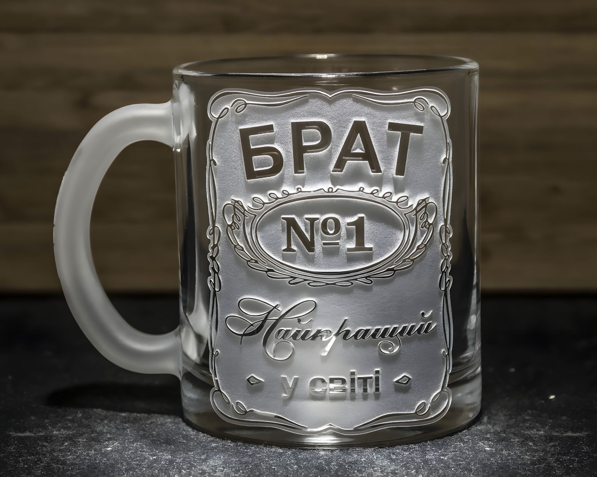 Чашка для чая и кофе с гравировкой "БРАТ №1 Самый лучший в мире" - подарок брату