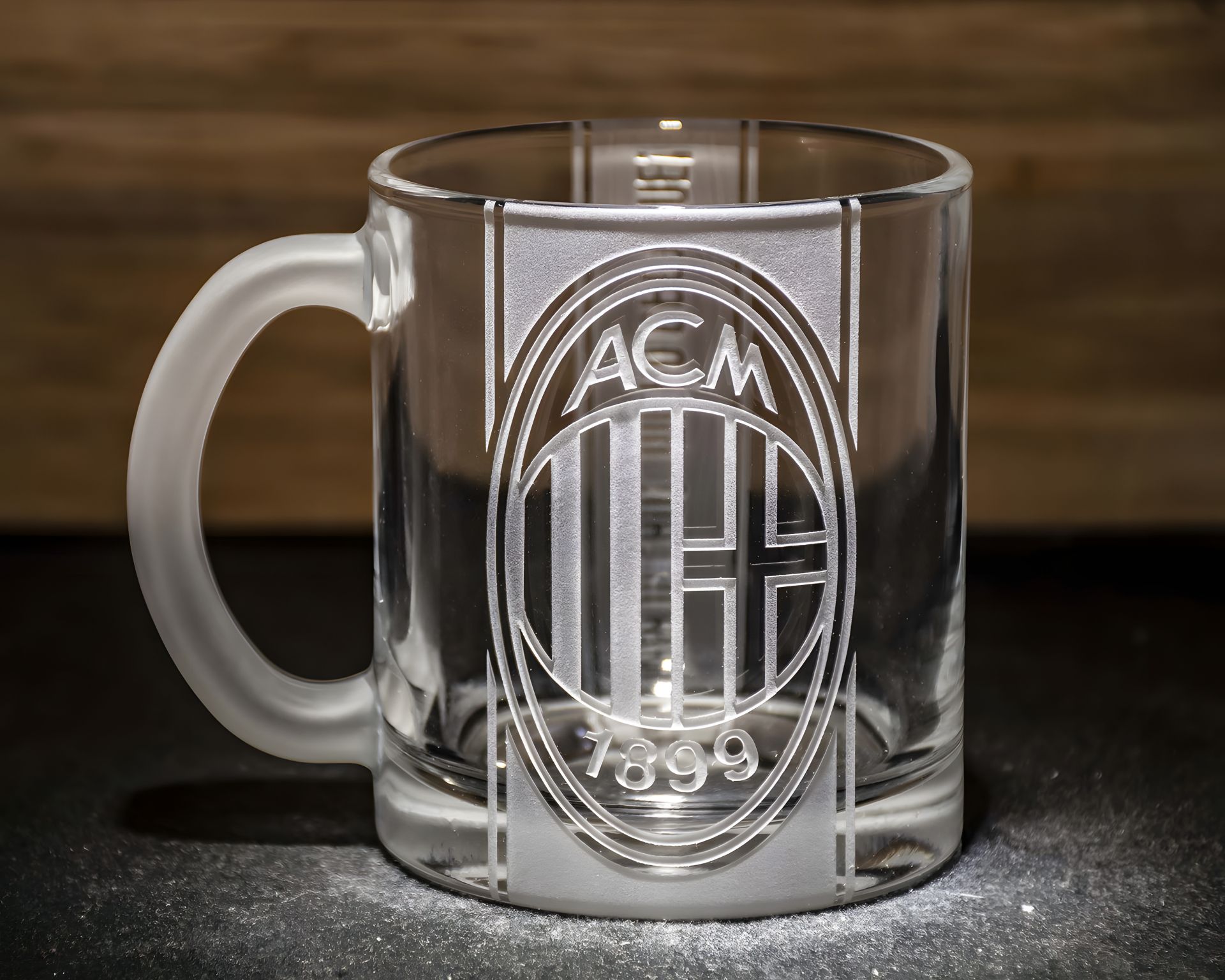 Чашка с гравировкой лого футбольного клуба ФК Милан FC Milan двухсторонняя с лозунгом SandDecor