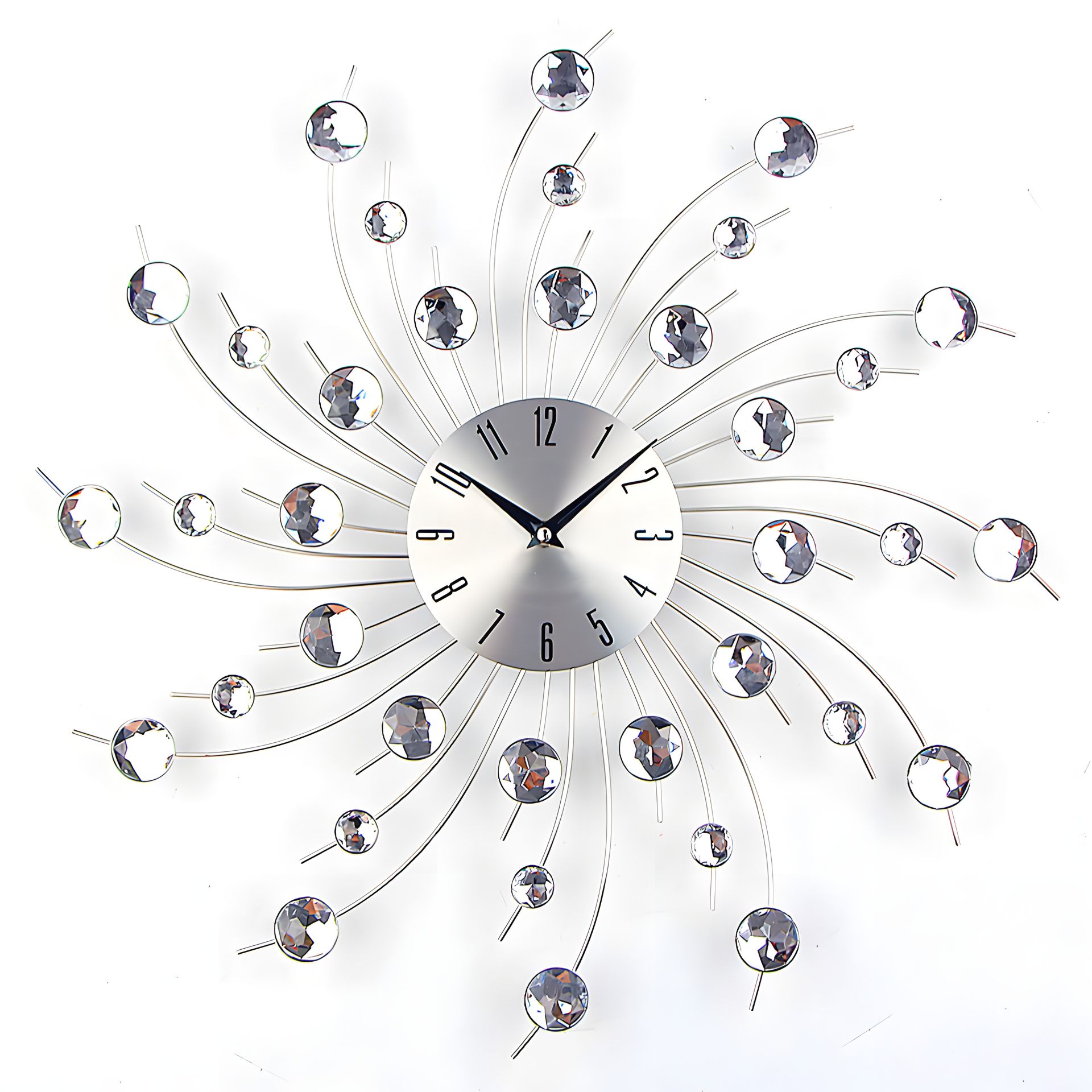 Очень красивые большие настенные часы, которые станут необычным украшением вашей комнаты. Очень тихий механизм позволяет разместить эти часы на стене в спальне. Благодаря эстетическому дизайну и благородно мерцающим стразам они будут одним из центральных элементов декора вашего дома.