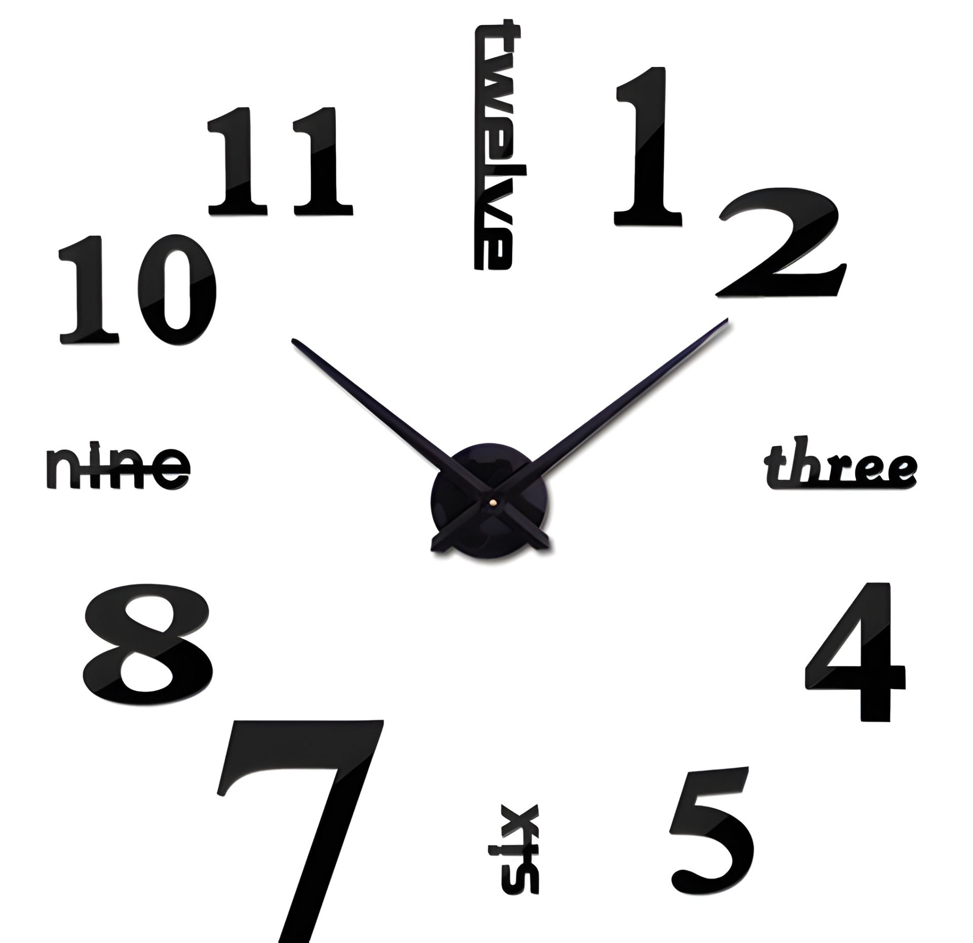 Настенные часы 3D 130 см NC (Чехия), большие черные надписи