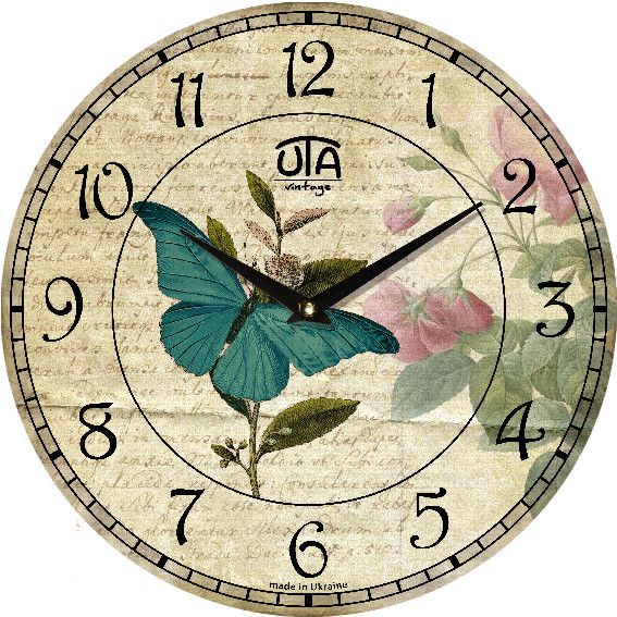 Настенные часы ЮТА “Vintage” (33 cм) 038 VP “Прованс” – имеют круглую форму, диаметр 33 см, толщину 2,7 см, вес 0,6 кг.