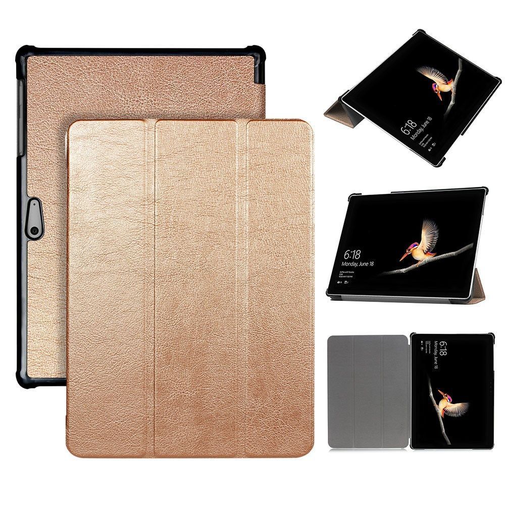 Чохол Microsoft Surface Go 2 3 зовні обклеєний шкірою пересованої виглядає дуже стильно, а завдяки своїй структурі чітко повторює форму планшета. Пластикова основа чохла, яка засувається на задню частину планшета, зроблена з міцного, але в той же час не товстого пластику. Для того щоб ваш планшет менше піддавався дрібним пошкодженням зсередини пластик обклеєний мікрофіброю, яка плавно переходить в обкладинку, яка закриває екран. Зовнішній матеріал також цілісним шматком переходить із задньої кришки на передню частину яка закриває екран. Природно зроблений він виключно для Microsoft Surface Go 10.5, так що всі камери, регулятори, кнопки і отвори будуть легко доступні. Конструкція чохла дозволяє без особливих зусиль перетворити його на підставку, що дуже зручно, коли ви втомилися і хочете просто подивитися фільм. Ви просто складаєте пробігану передню обкладинку по згинах і ви отримуєте трикутну підніжку Microsoft Surface Go 2 3, а за рахунок вшитих всередину магнітів вона в такому стані тримається дуже міцно. А на додаток до цього є ще одна дуже зручна функція - при закритті чохла екран гасне завдяки спеціальним внутрішнім магнітам.