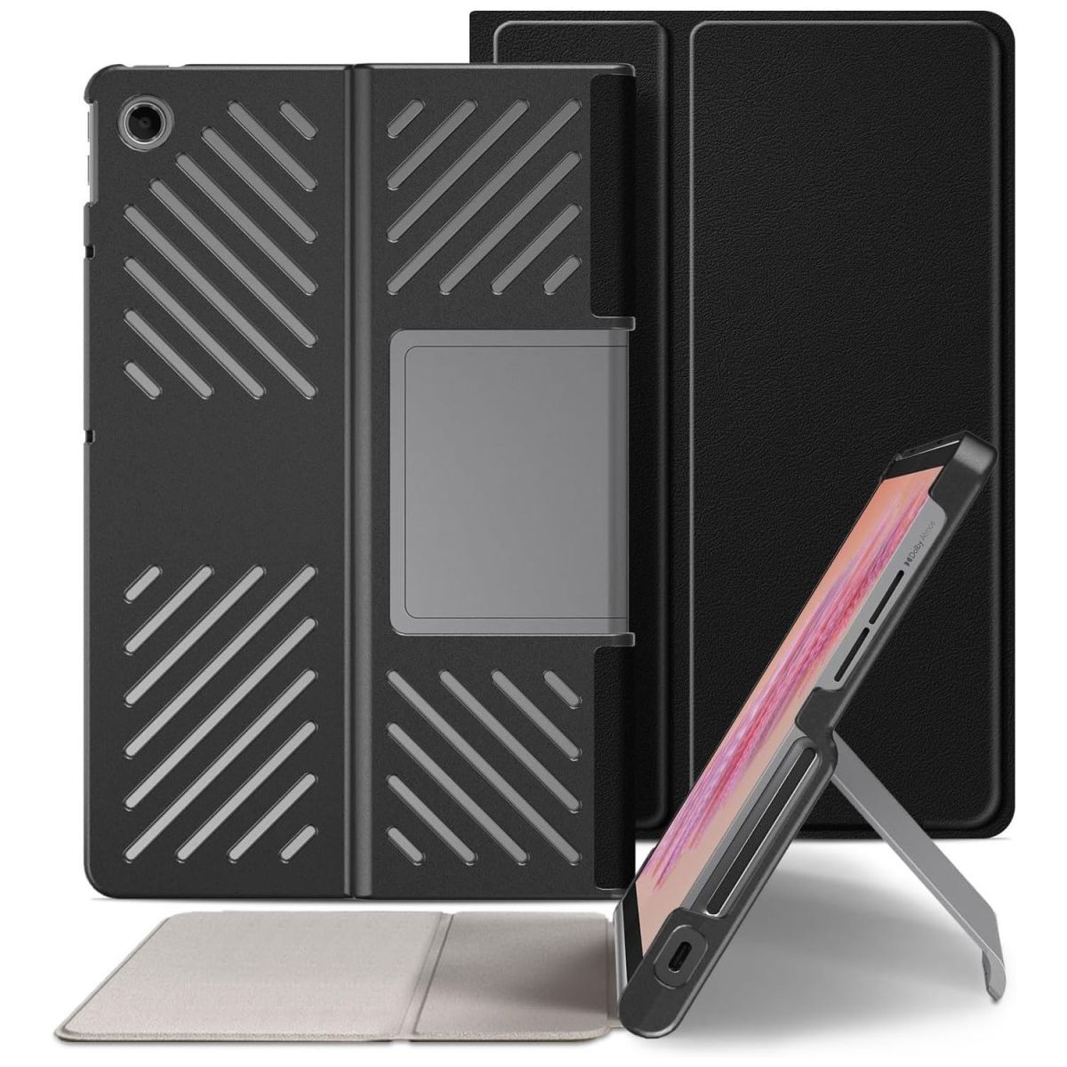 Найважливішим доповненням для купленого вами планшета є чохол, адже з ним ваш планшет буде зашитий від сколів та подряпин. За статистикою поланшети в чохлі ушкоджуються вп'ятеро рідше, а серйозні каліцтва зовсім виключають. Ви повинні купити чохол для нового гаджета Lenovo Tab Plus(2024). Чохол для Lenovo Tab Plus 11.5 TB351fu 2024 виконаний з пресованої шкіри, це дуже якісний матеріал, так як основу матеріалу складає шкіряні обрізки і труха, далі додаються невеликий відсоток синтетичних складових, щоб матеріал був цілісним і міцним, таким чином виходить шкіряний матеріал але не дорогий . Більшість чохлів із пластиковою основою мають одну проблему — з часом кутики можуть відбиватися, і пластик перестає надійно тримати планшет. У нашому випадку ця проблема вирішена завдяки спеціальним прорізам на корпусі: вони роблять пластик більш гнучким, дозволяючи йому деформуватися та повертатися у попередній стан без пошкоджень. Крім того, такі прорізи виконують роль вентиляції, сприяючи охолодженню корпусу планшета й захищаючи його від перегрівання. Тому у нас можна купити чохол Lenovo Tab Plus 11.5 2024 року недорого. Варто сказати про виконання чохла, на задній частині обкладинки є отвір для камери. Всередині камери також відкриті для роботи, крім цього всі слоти та кнопки відкриті та доступні. В основі чохла йде пластиковий бампер, що добре захищає гаджет по периметру. Конструкіця у вигляді підставки дозволяє встановити Xiaoxin Pad Studio 2024 у чохлі на стіл для перегляду відео чи набору тексту.