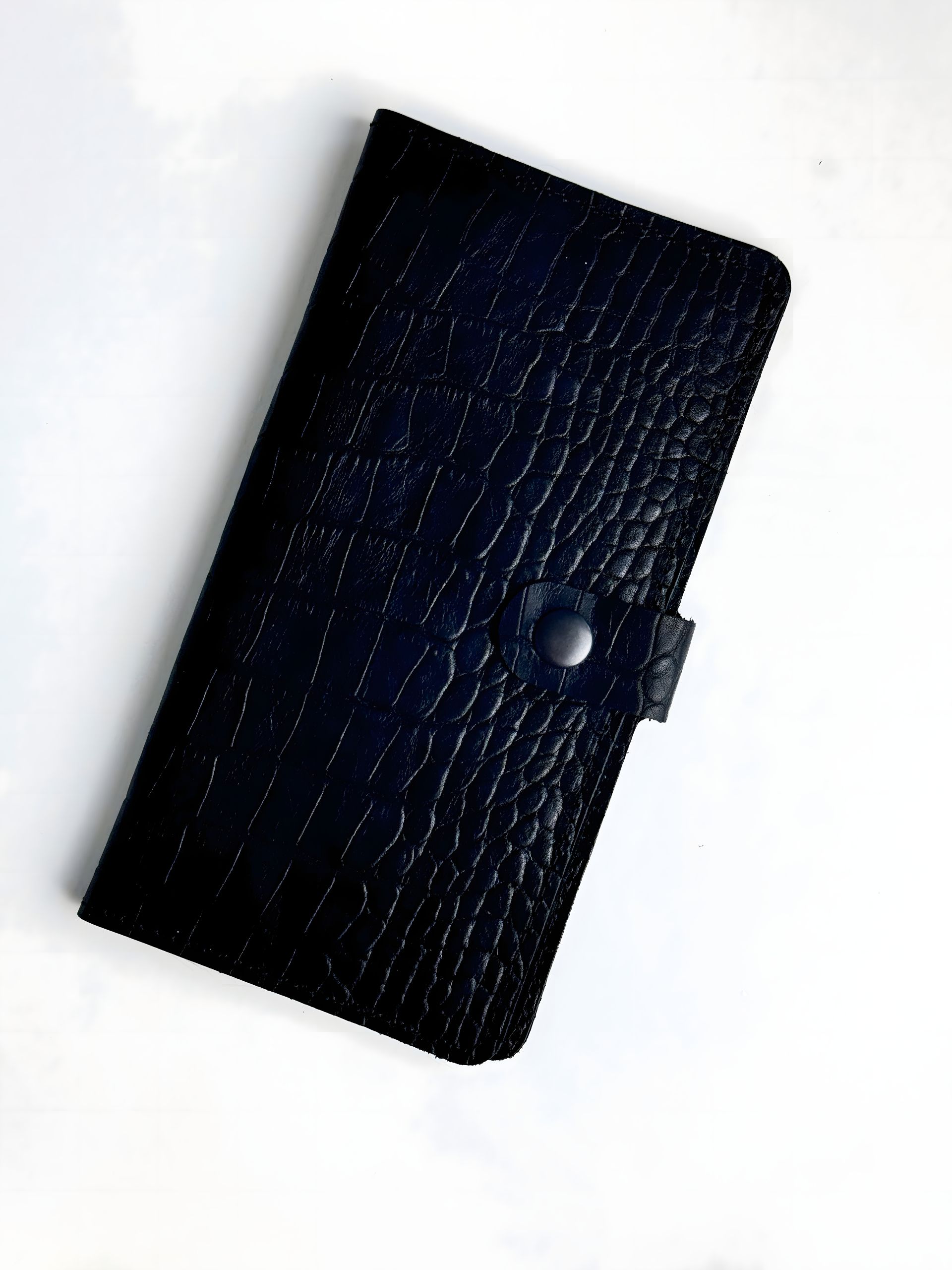 Натуральное кожаное портмоне с тиснением под крокодила, черное