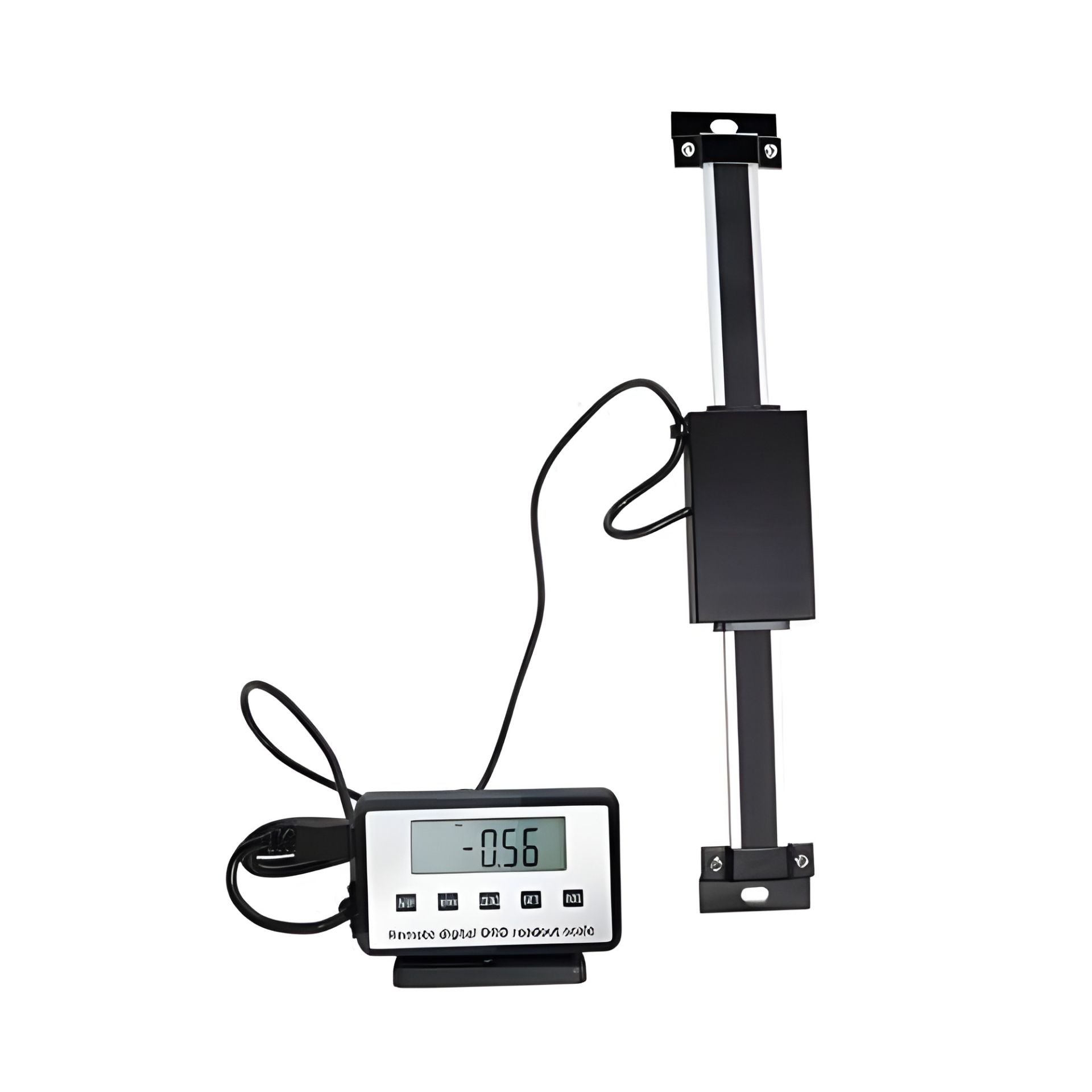 К датчику подсоединен на проводе дисплей с кнопками управления. Данные перемещения датчика фиксируются на дисплее. В комплекте с цифровой линейкой поставляется специальный крепеж, поэтому линейку и дисплей можно закрепить в любом положении. Питание прибора осуществляется при помощи двух батареек типа CR2032, которых будет достаточно до 6-12 месяцев работы.