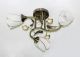 Три плафона из стекла белого цвета имеют форму цветка, что придает им нежность и эффектность. Кроме того, сама люстра украшена цветочными элементами, создающими особый шарм.