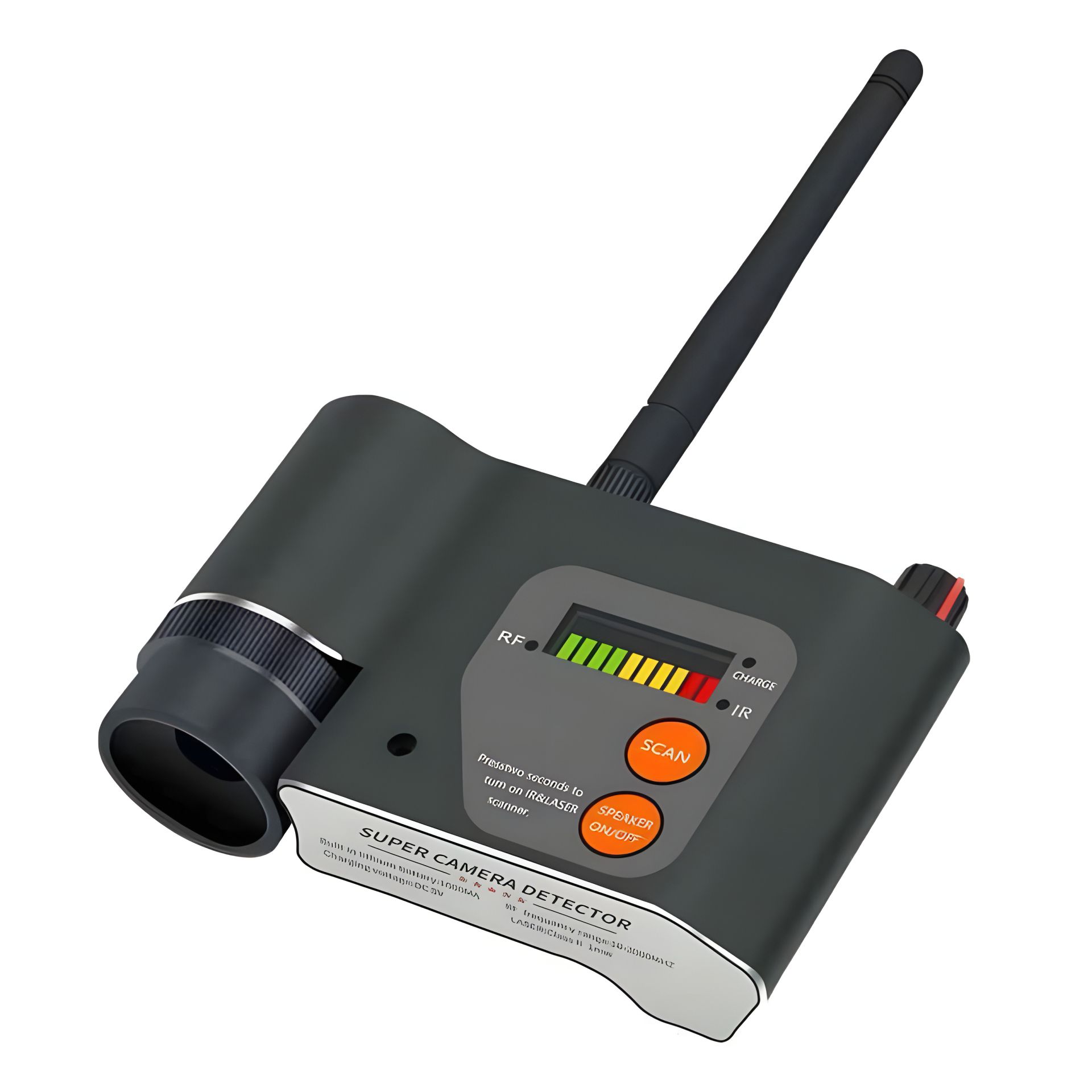 Впервые в поисковых устройствах среднего класса применен детектор ИК излучений с лазерным целеуказателем. В данном режиме поиска, специальный фотодатчик улавливает невидимое инфракрасное излучение от подсветки камеры и сигнализирует об этом. При попадании ИК света от скрытой подсветки, детектор будет издавать сигнал который можно отключить, наблюдая визуально за LED индикатором. Поиск облегчается благодаря красному лазеру (целеуказателю) который показывает куда направлен фотодатчик ИК приёмника.