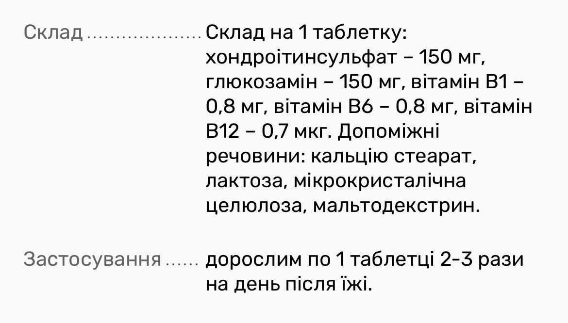 Рекомендации по применению: могут быть использованы в рационах диетического питания как источник хондроитина, глюкозамина, витаминов В1, В6, В12 с целью создания оптимальных диетологических условий для нормального функционирования опорно-двигательного аппарата. ХОНДРОИТИНСУЛЬФАТ И ГЛЮКОЗАМЕНЫ препятствуют разрушению и способствуют восстановлению суставного хряща, улучшая подвижность и гибкость суставов.