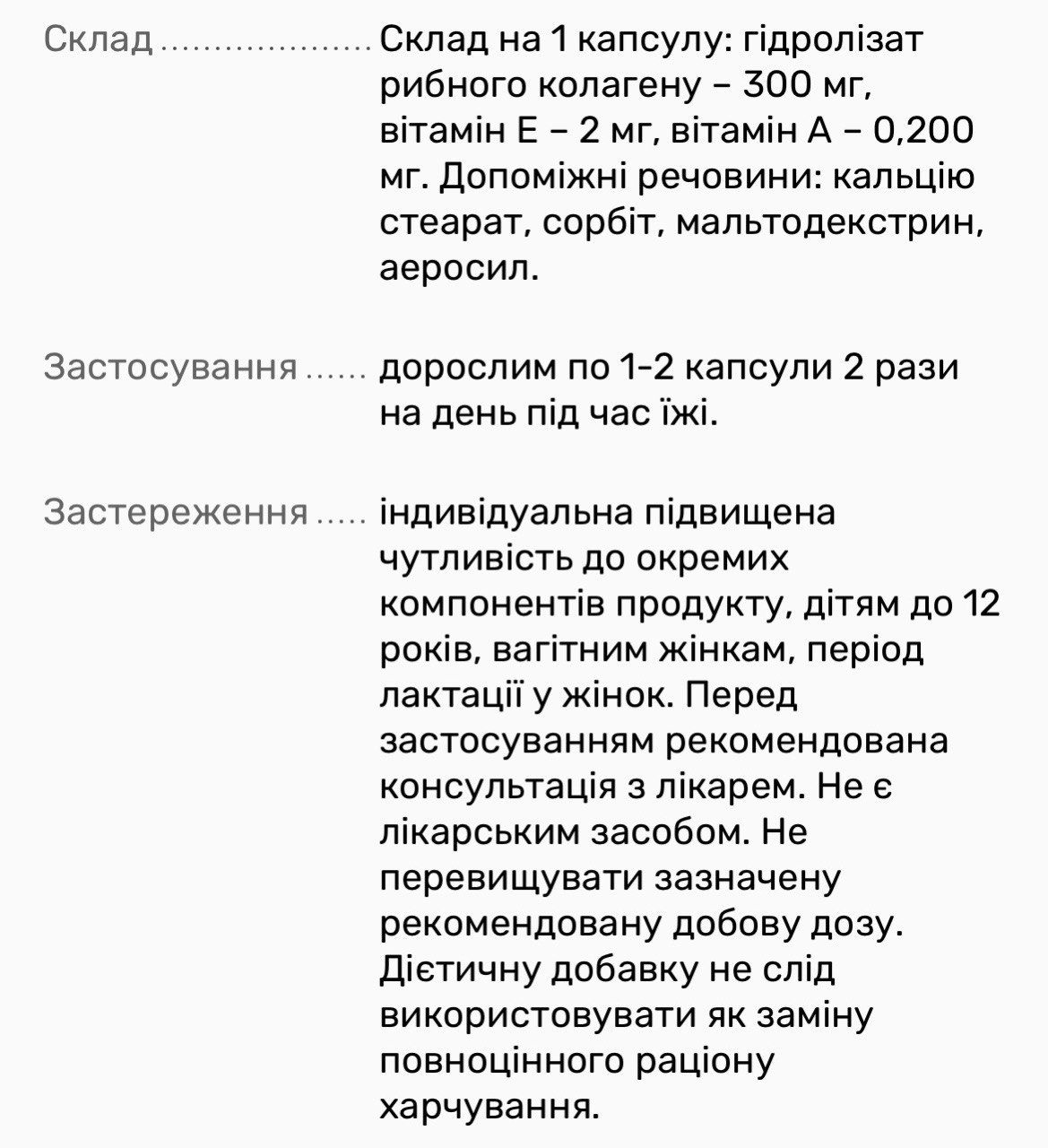 Рекомендации по применению: может быть использована в рацион питания как дополнительный источник биологически активных веществ растительного происхождения, витаминов и минералов в качестве улучшения регенерации кожи, общего состояния ногтей и кожного покрова человека. Также способствует укреплению костей, связок и суставов. Цвет капсул может отличаться в зависимости от партии.