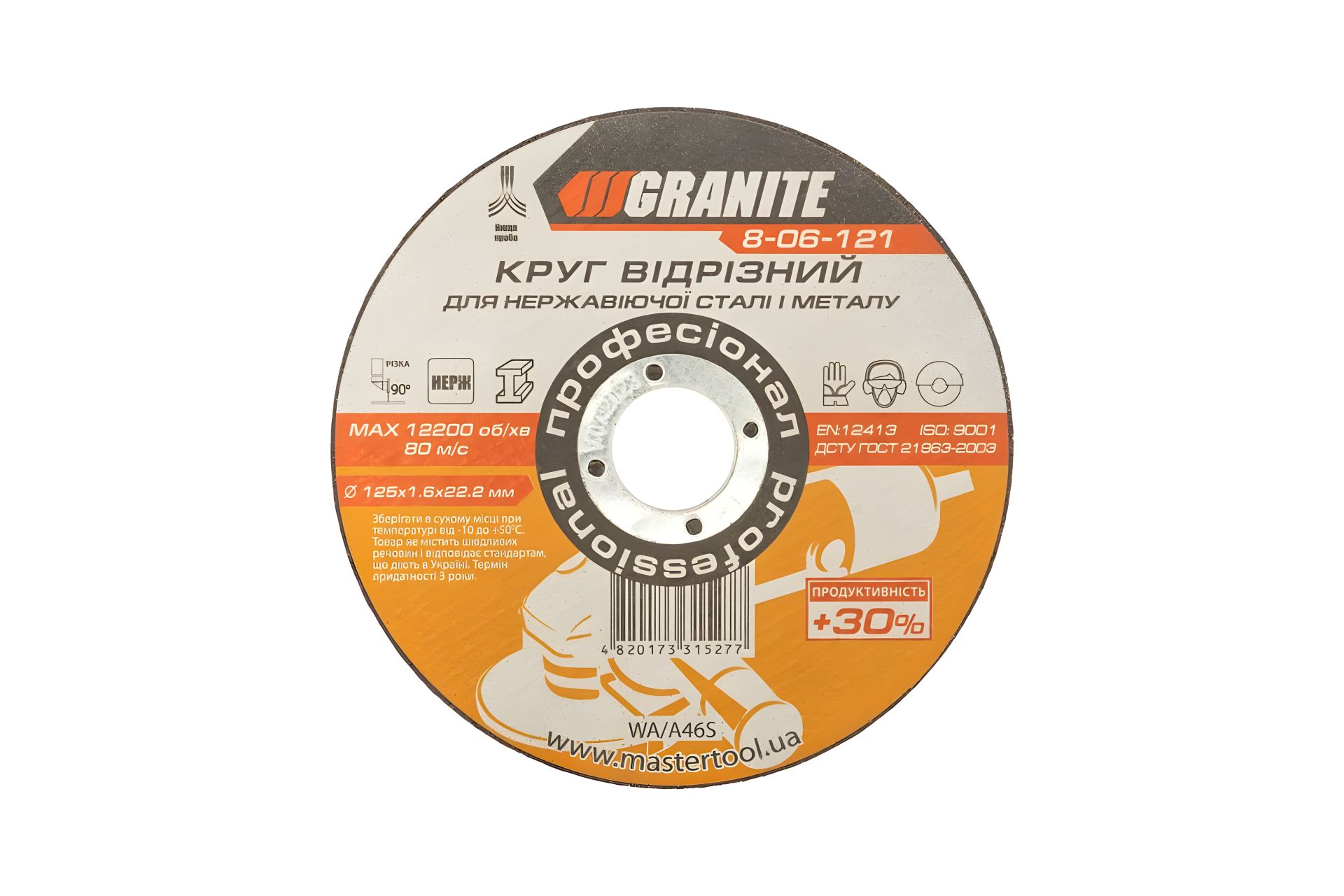 Металлоотрезной диск для стали и нержавейки PROFI +30 125х1.6х22.2 мм MASTERTOOL 8-06-121