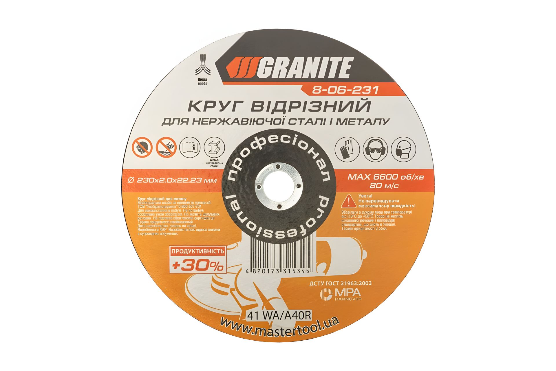 Абразивный отрезной диск для металла и нержавеющей стали PROFI +30 230х2.0х22.2 мм MASTERTOOL 8-06-231