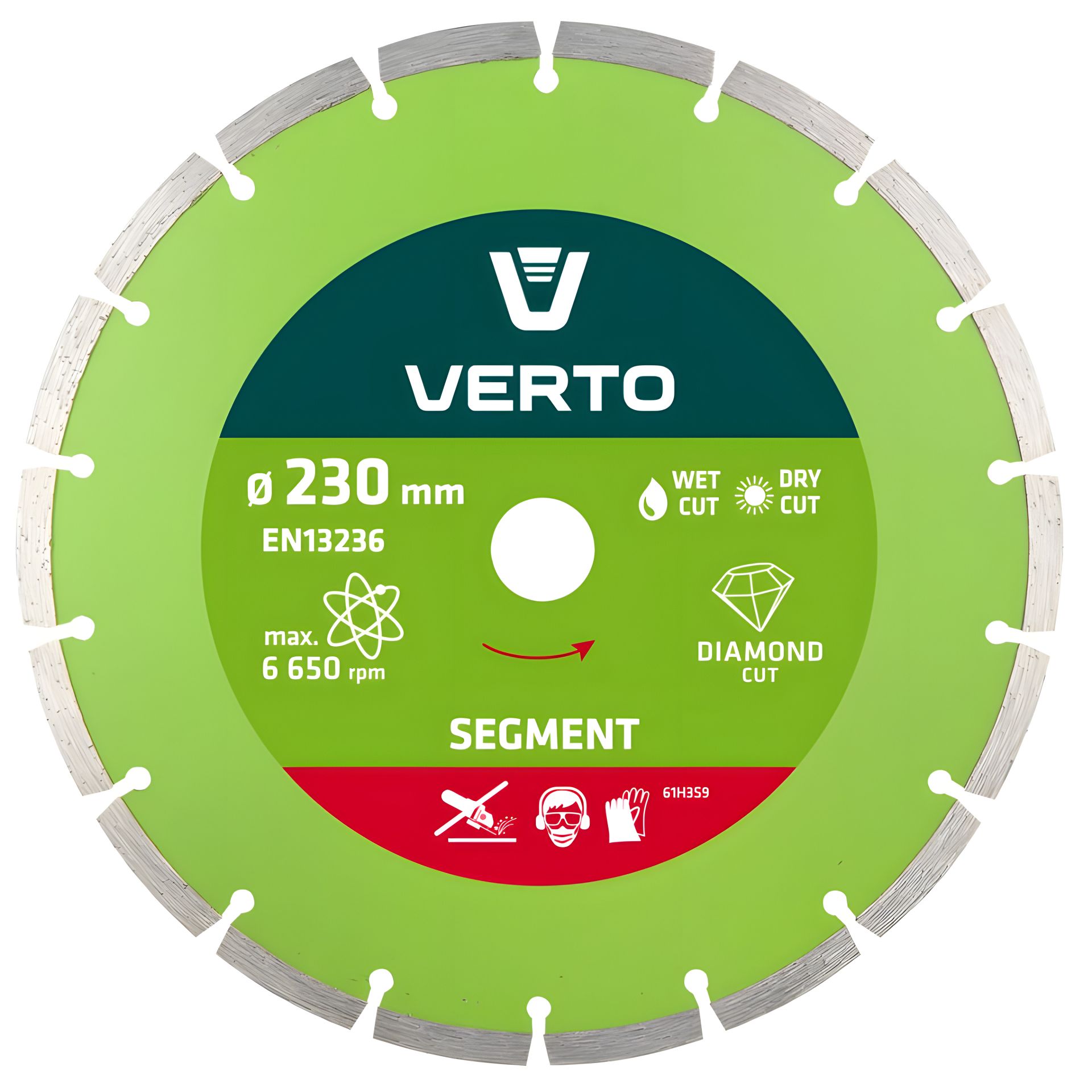 Алмазный диск сегментный 230 x 22.2мм VERTO 61H3S9