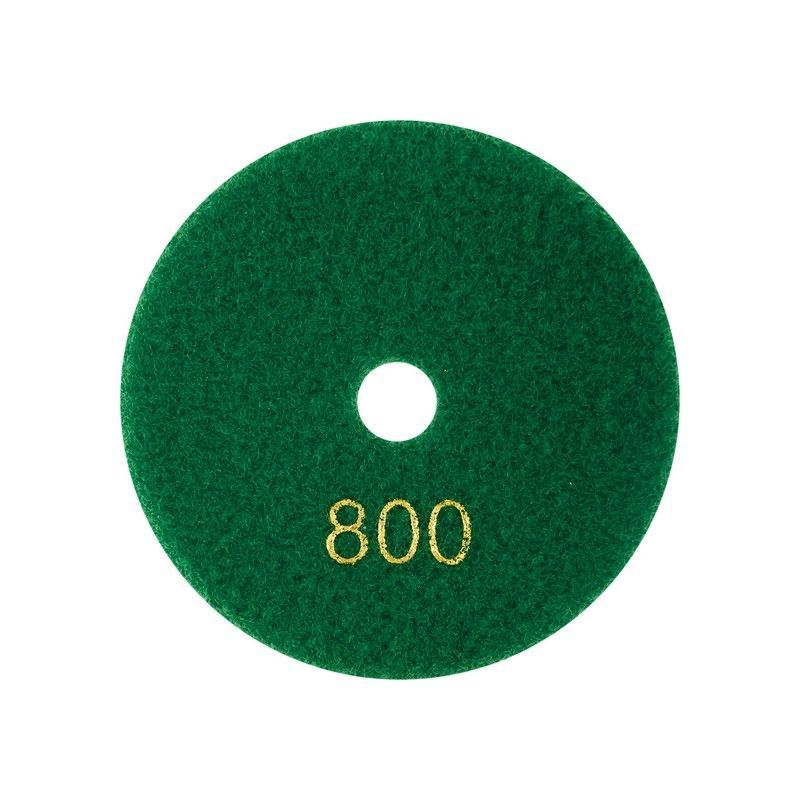 Диск шлифовальный алмазный гибкий Ø100 мм P800 на липучке 2800 об/мин — инструмент для деликатной финишной шлифовки и полировки твердых поверхностей: мрамора, гранита, керамики, бетона и искусственного камня. Обеспечивает гладкую, ровную структуру без царапин и подготавливает материал к окончательной полировке.
