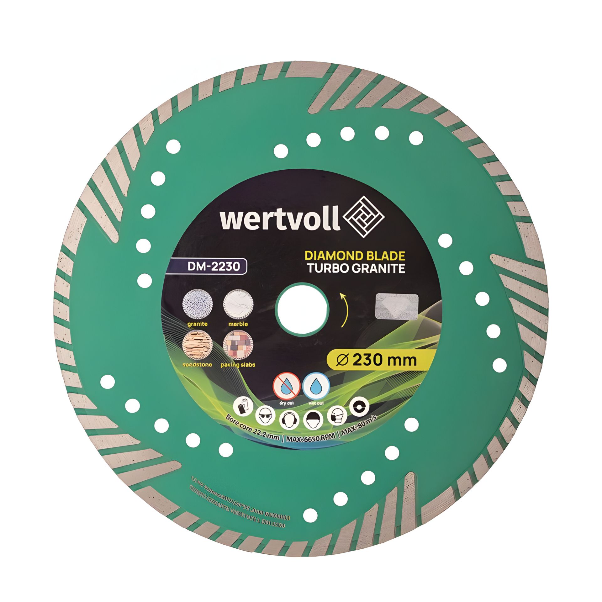 Π°Π»ΠΌΠ°Π·Π½ΡΠΉ Π΄ΠΈΡΠΊ ΠΏΠΎ Π³ΡΠ°Π½ΠΈΡΡ, Π΄ΠΈΡΠΊ ΠΏΠΎ ΠΊΠ°ΠΌΠ½Ρ, turbo granite 230, Π΄ΠΈΡΠΊ 230 ΠΌΠΌ, WERTVOLL, Π΄ΠΈΡΠΊ Π΄Π»Ρ ΡΡΠΎΡΡΠ°ΡΠ½ΠΎΠΉ ΠΏΠ»ΠΈΡΠΊΠΈ, Π΄ΠΈΡΠΊ Π΄Π»Ρ ΠΊΠ°ΠΌΠ½Π΅ΡΠ΅Π·Π°, Π΄ΠΈΡΠΊ Π΄Π»Ρ Π±ΠΎΠ»Π³Π°ΡΠΊΠΈ, Π°Π»ΠΌΠ°Π·Π½ΡΠΉ ΡΠ»ΠΎΠΉ 8 ΠΌΠΌ, DM-2230ΠΠ»ΠΌΠ°Π·Π½ΡΠΉ Π΄ΠΈΡΠΊ TURBO GRANITE 230Γ3 ΠΌΠΌ, h=8 ΠΌΠΌ, >24%, Π°Π΄Π°ΠΏΡΠ΅Ρ 22,2β20 ΠΌΠΌ, 6650 ΠΎΠ±/ΠΌΠΈΠ½ WERTVOLL (DM-2230)