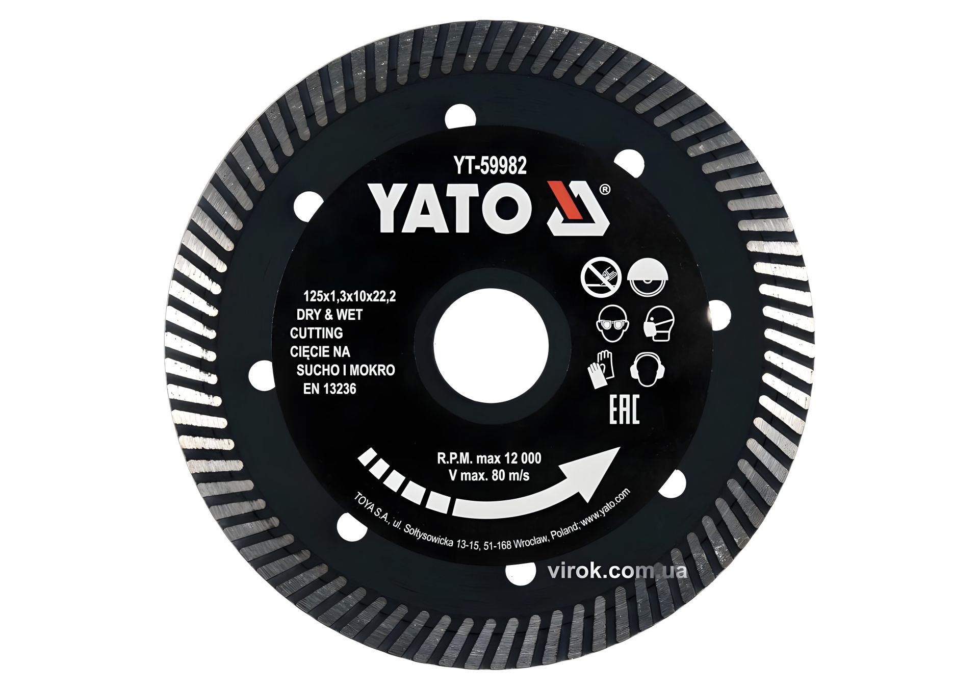 YaTo Турбо-диск отрезной алмазный по керамограниту Ø=125x1.3x10x22.2 мм (YT-59982)
