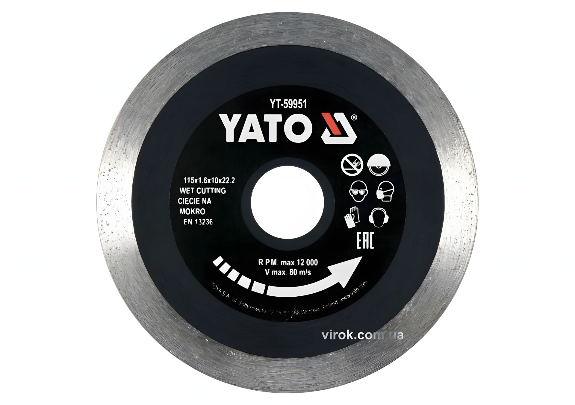 Диск отрезной алмазный по гресу, стеклу, керамике YATO Ø=115х1.6х10х22.2 мм,в мокром и сухом режиме