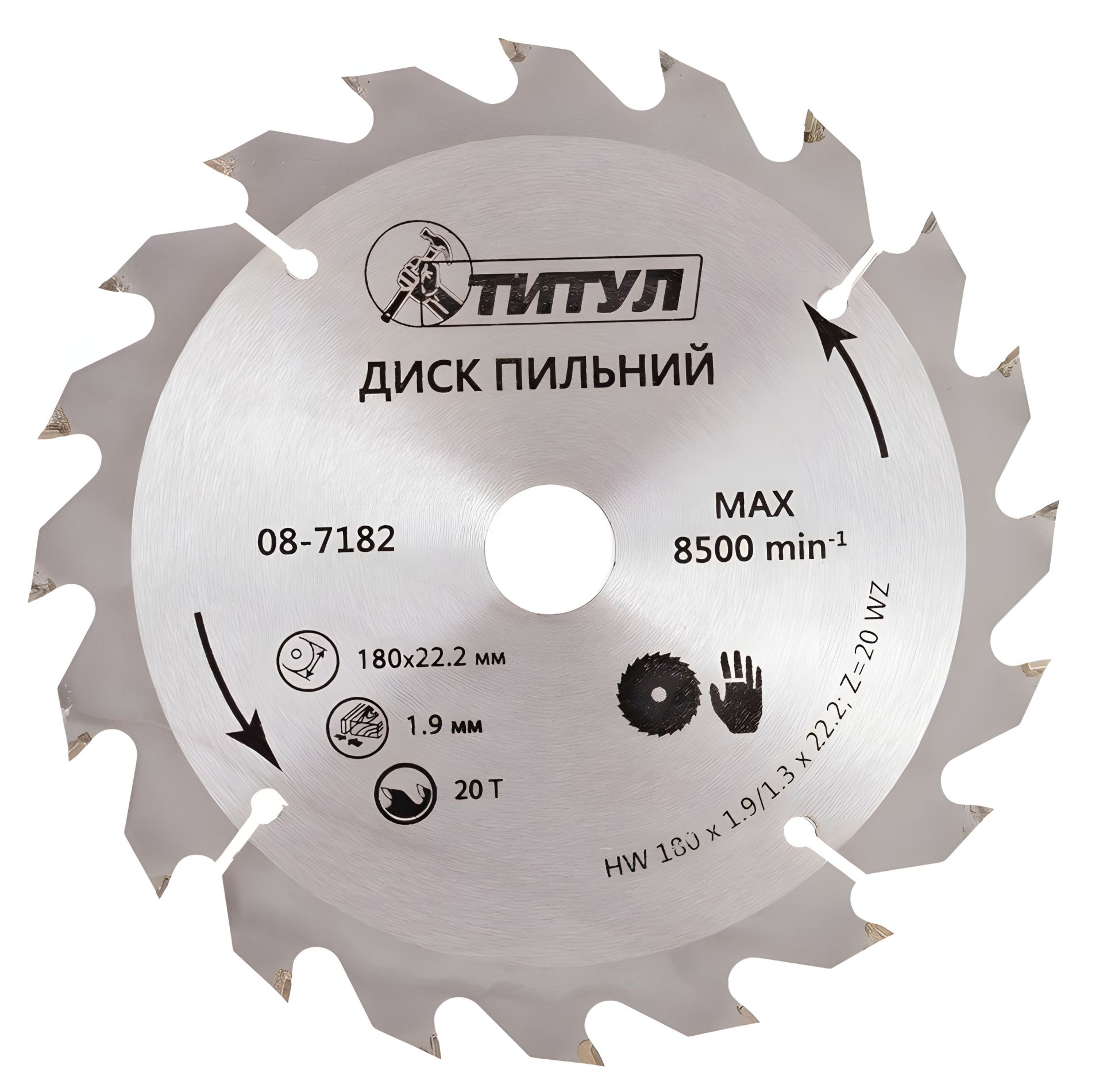 Пильный диск для дерева с твердосплавными напайками 180х22.2х20Т, адаптер 22.2-20 от MASTERTOOL (модель 08-7182)