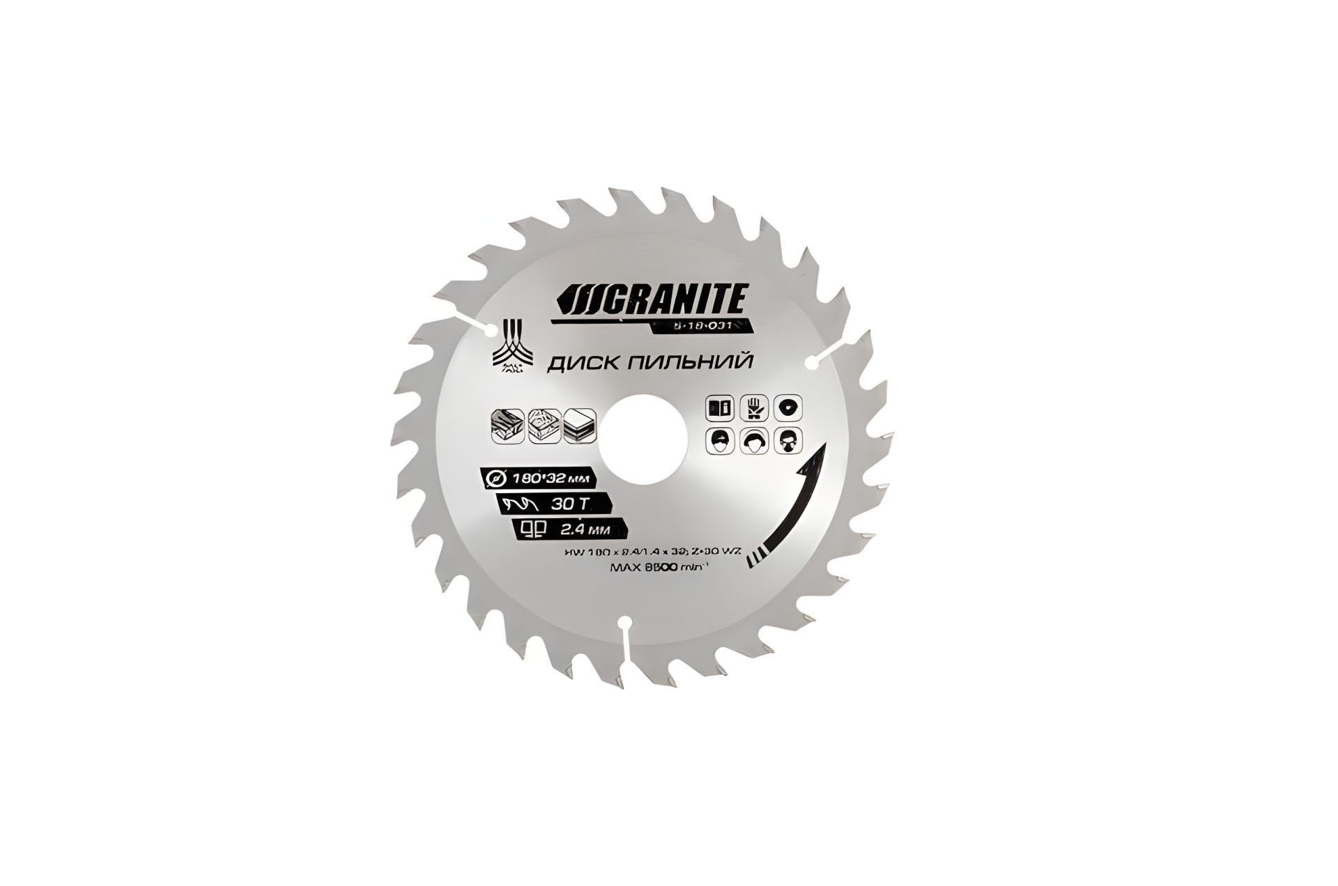 Пильный диск для дерева с твердосплавными напайками 180×32×30Т адаптер 32–30 мм 8400 об/мин — высококачественный инструмент для чистой и точной резки древесины различных пород.