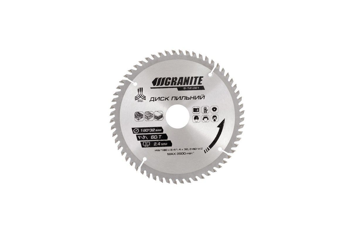 Пильный диск для дерева с твердосплавными напайками 180х32х60Т адаптер 32-30 8400 об/мин — высококачественный пильный диск для чистого и точного распила древесины, фанеры, ДСП и МДФ. Оснащен 60 твердосплавными зубьями (TCT), обеспечивающими гладкий срез без сколов и длительный срок службы.