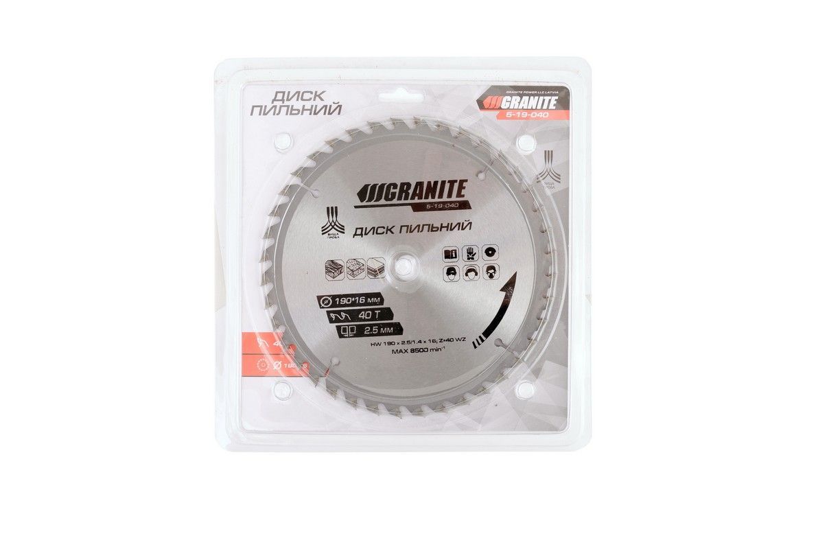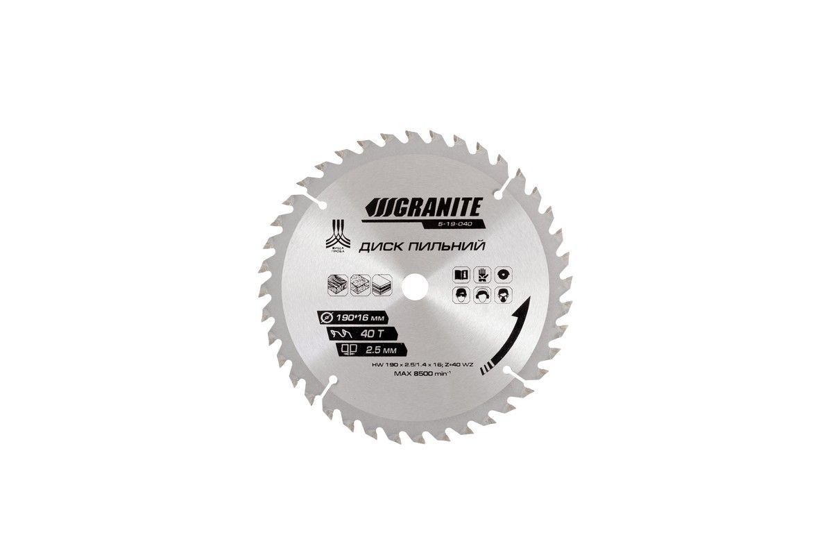 Диск пильный для дерева с твердосплавными напайками 190х16х40Т 8000 об/мин MASTERTOOL 5-19-040