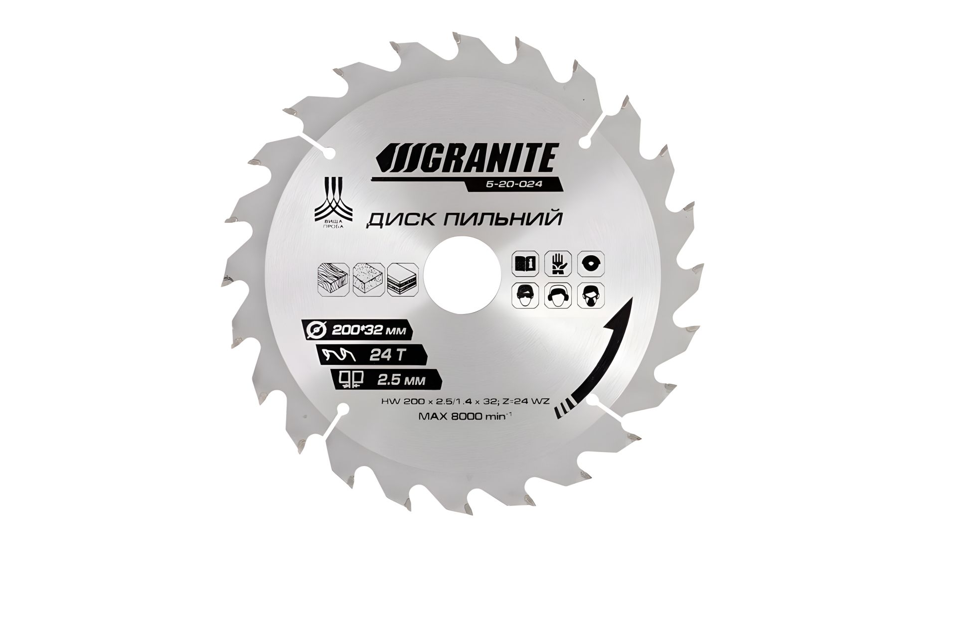 Пильный диск для дерева с твердосплавными напайками 200х32х24Т, адаптер 32-30/32-25.4, 7600 об/мин, MASTERTOOL 5-20-024