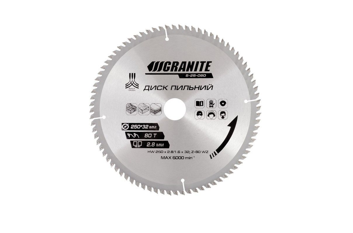 Диск пильный для дерева с твердосплавными напайками 250х32х80Т адапт 32-30/32-25.4 6100 об/мин MASTERTOOL 5-25-080