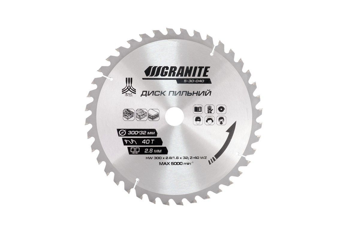 Диск пильный для дерева с твердосплавными напайками 300х32х40Т адапт 32-30/32-25.4 5100 об/мин MASTERTOOL 5-30-040