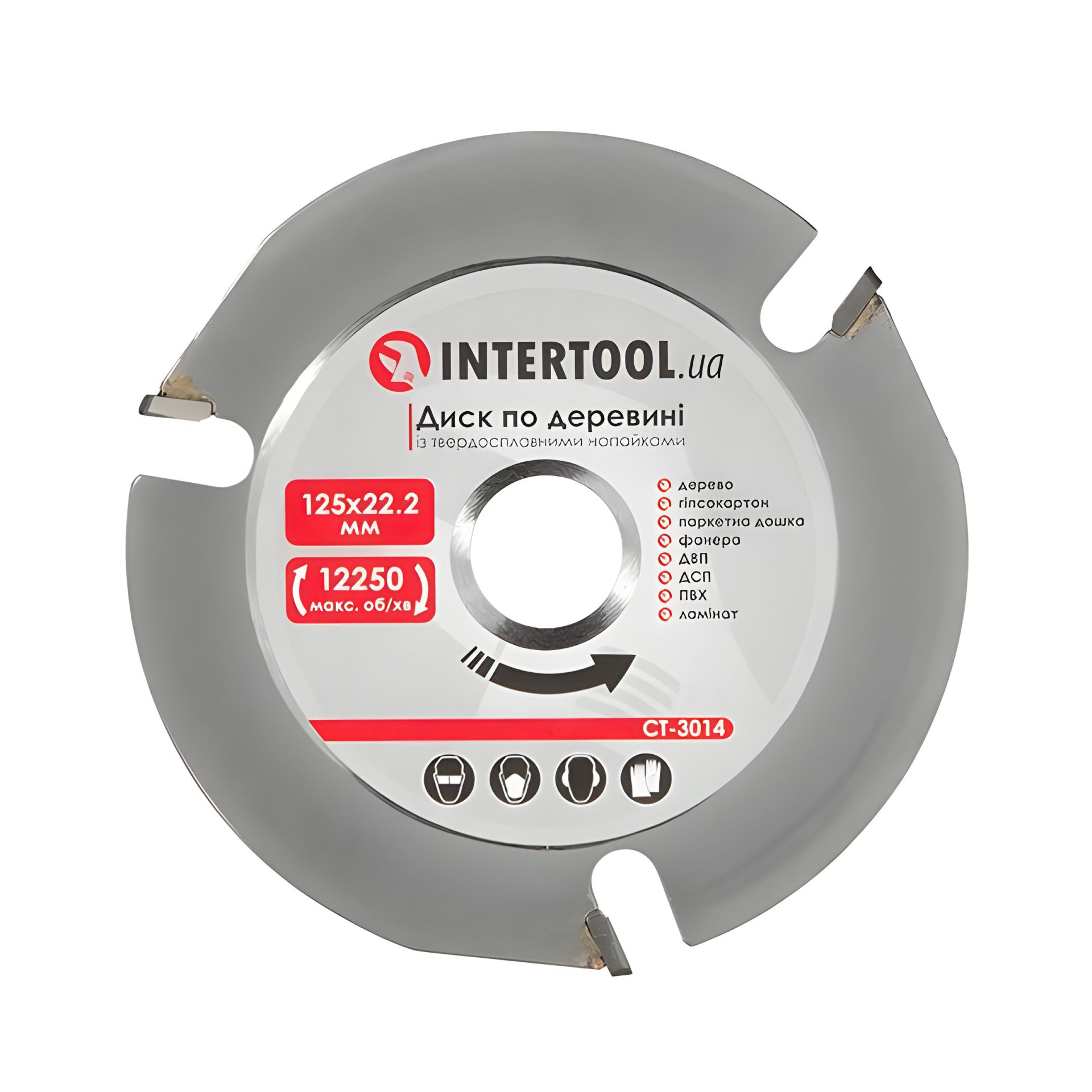 Деревянный диск с твердосплавными напайками, 125×22,2×2,0 мм, 3 зуба, 12250 об/мин INTERTOOL CT-3014