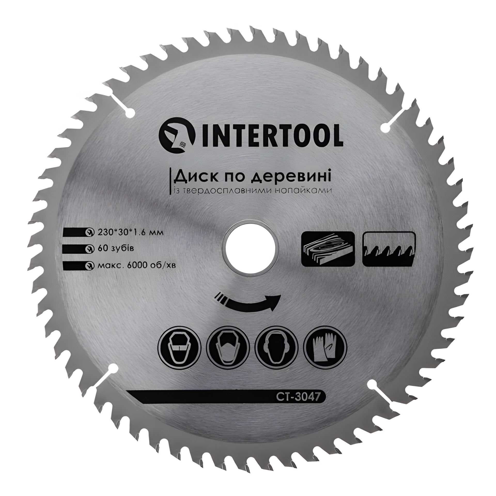 Диск по дереву с твердосплавными напайками 230×30×1,6 мм, 60 зубьев, 6000 об/мин INTERTOOL CT-3047