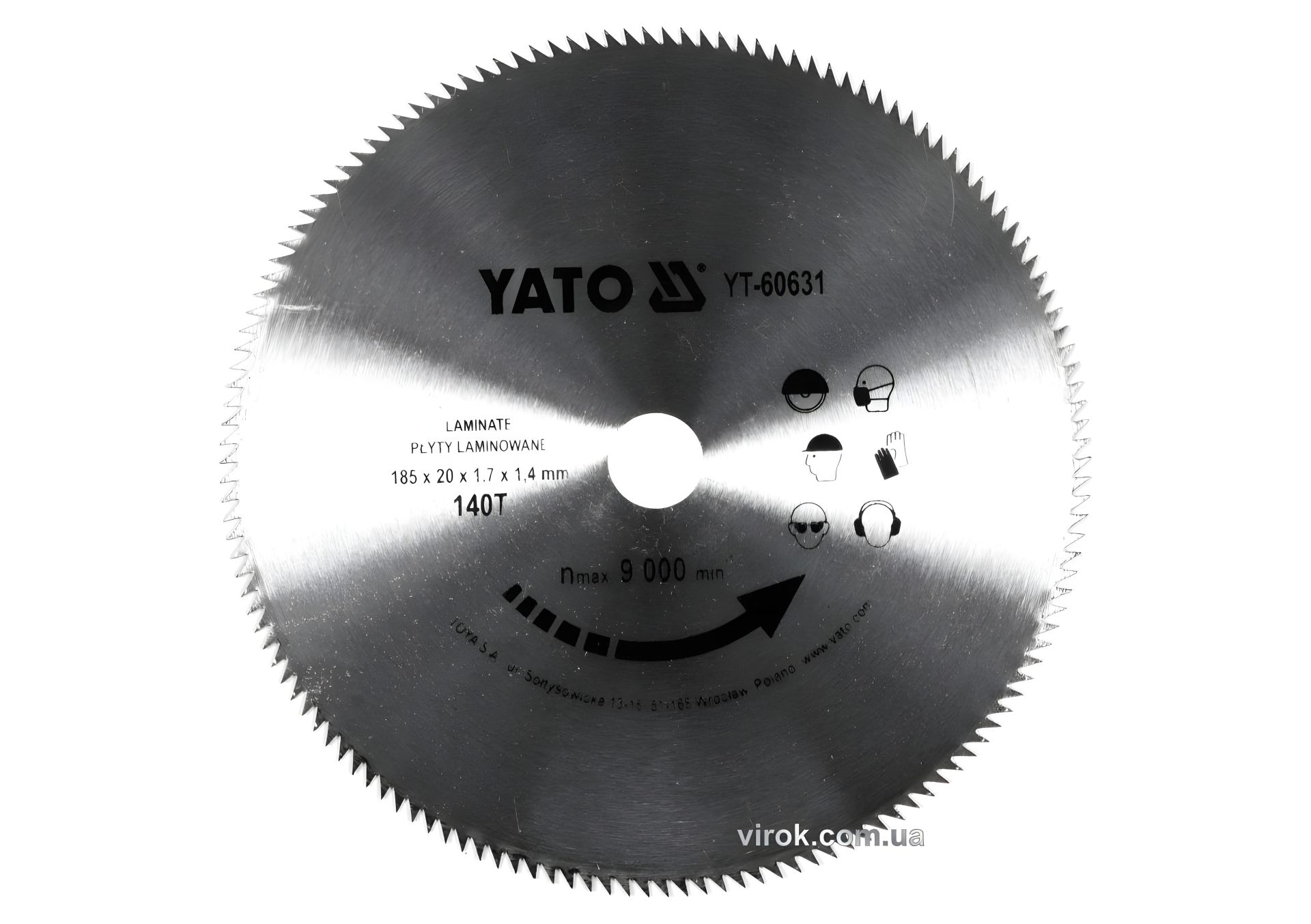 Пильный диск по ламинированным плитам, ламинату : Ø=180x1.7x20 мм, 140 зубьев, R. P. M до 9000 1/мин YaTo YT-60631