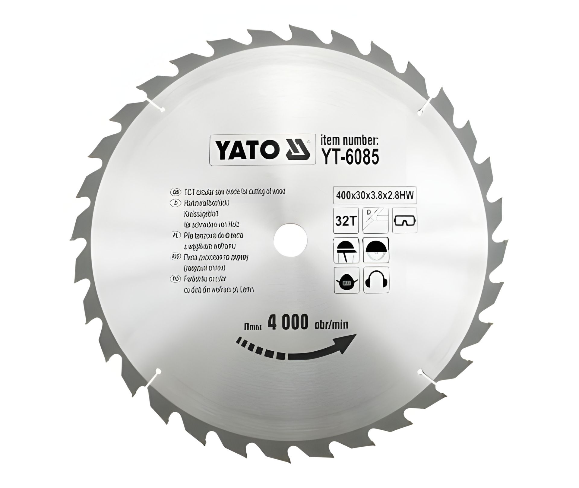 Пильный диск по дереву: победитовый, 400x30x3.8x2.8мм, 32 зубца, R.P.M до 4000 1/мин, Yato YT-6085