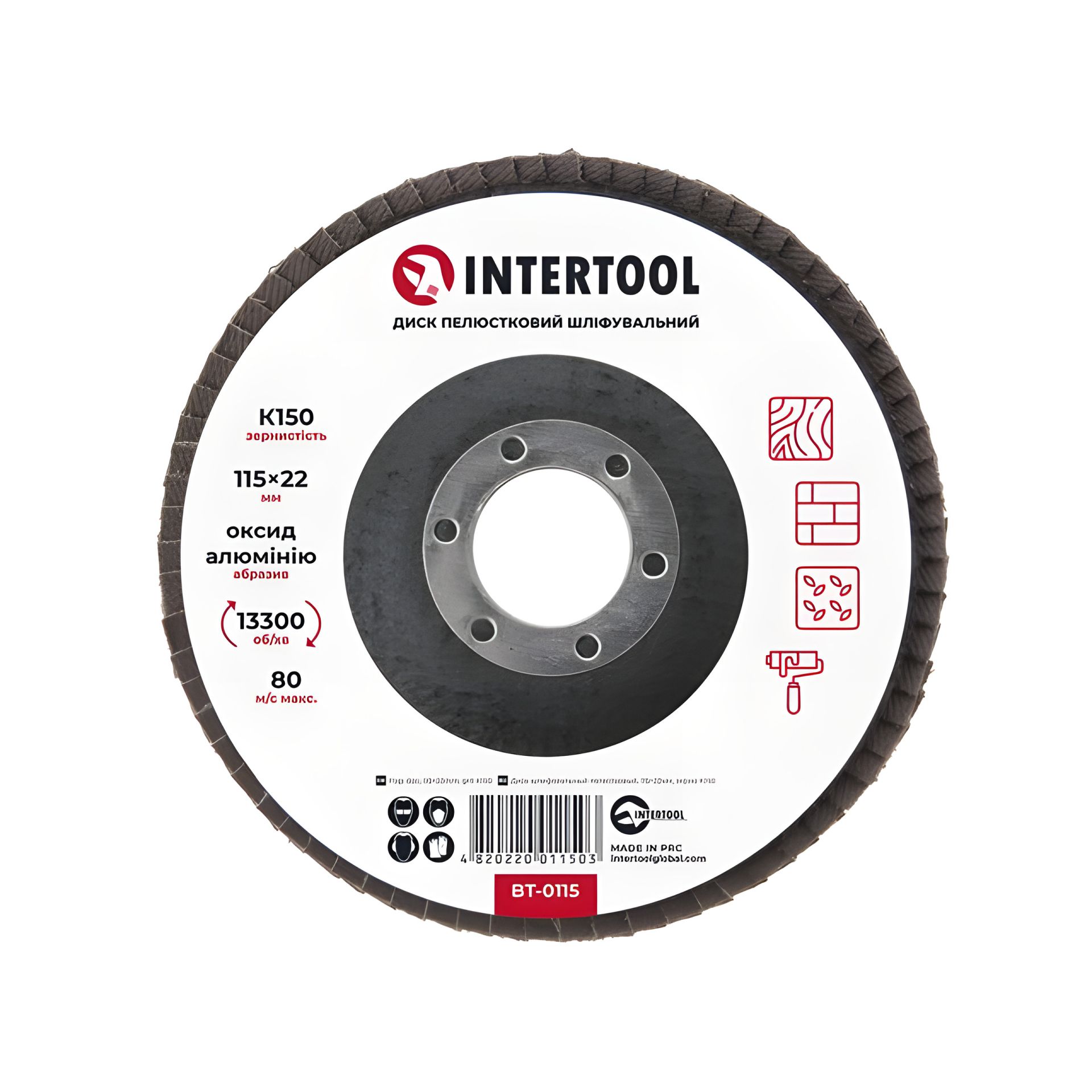 Лепестковый шлифовальный диск, 115×22 мм, зерно K150, 13300 об/мин INTERTOOL BT-0115