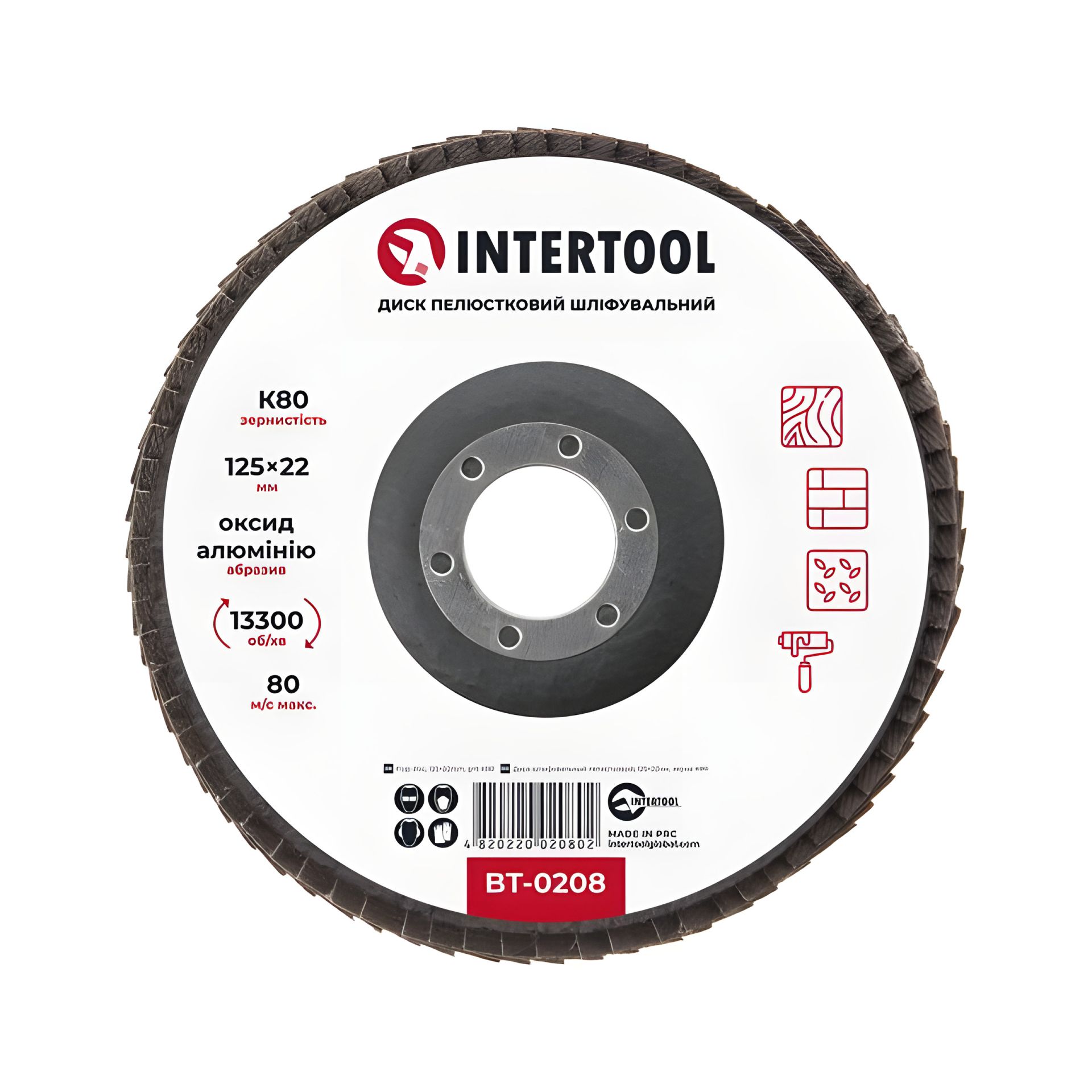 Лепестковый шлифовальный диск, 125×22 мм, зерно K80, 13300 об/мин INTERTOOL BT-0208