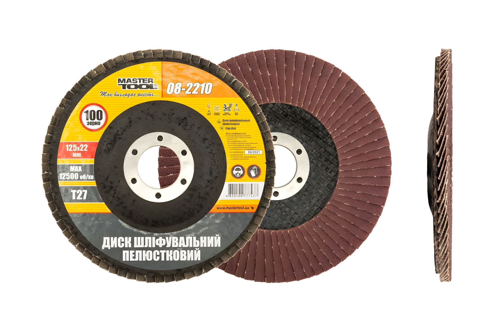 Лепестковый шлифовальный диск Т27 зерно 100 125×22 мм MASTERTOOL 08-2210