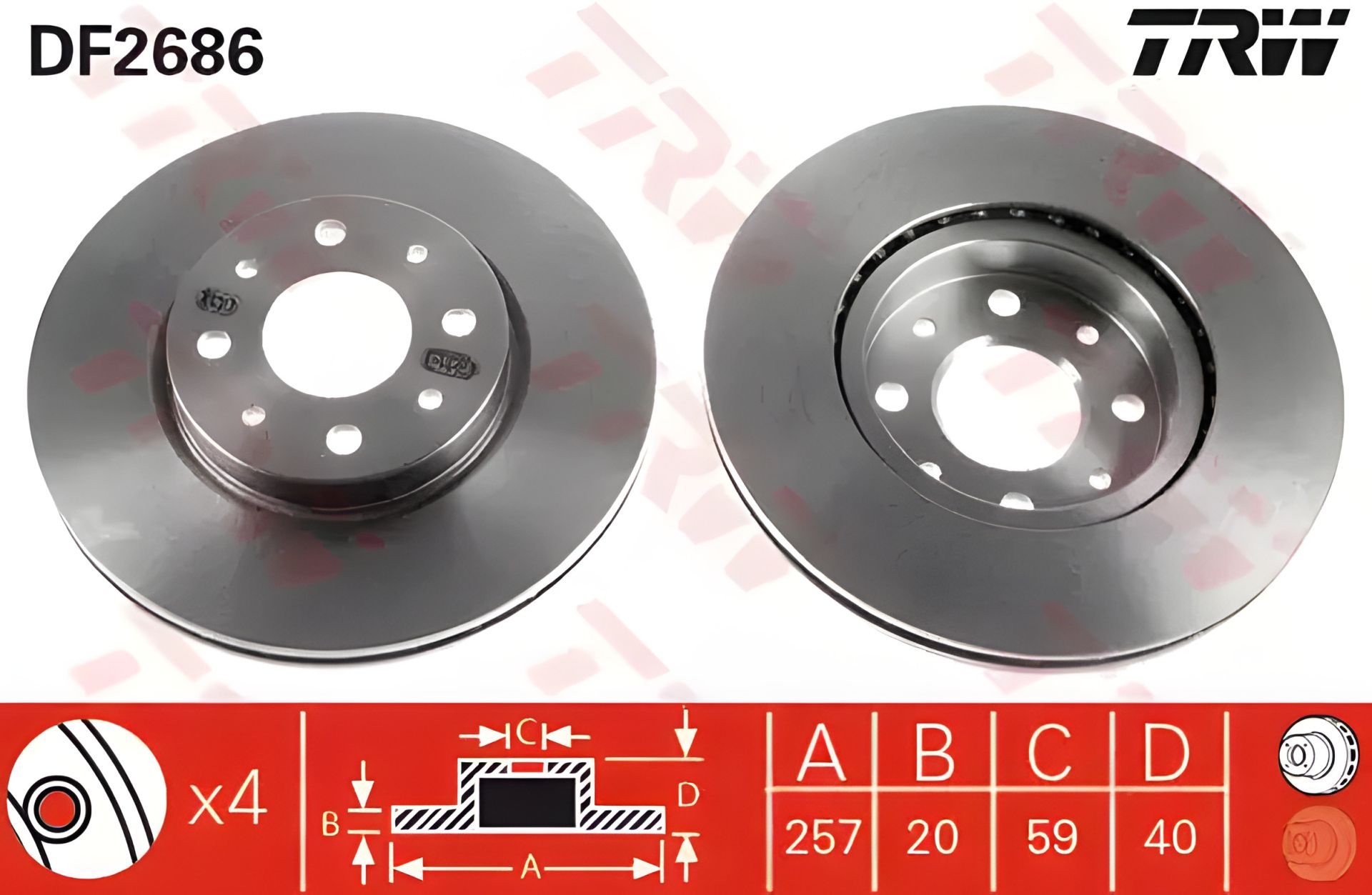 Тормозной диск (1 шт.) для ALFA ROMEO, FIAT, LANCIA 145/146/155/Albea, TRW (DF2686)