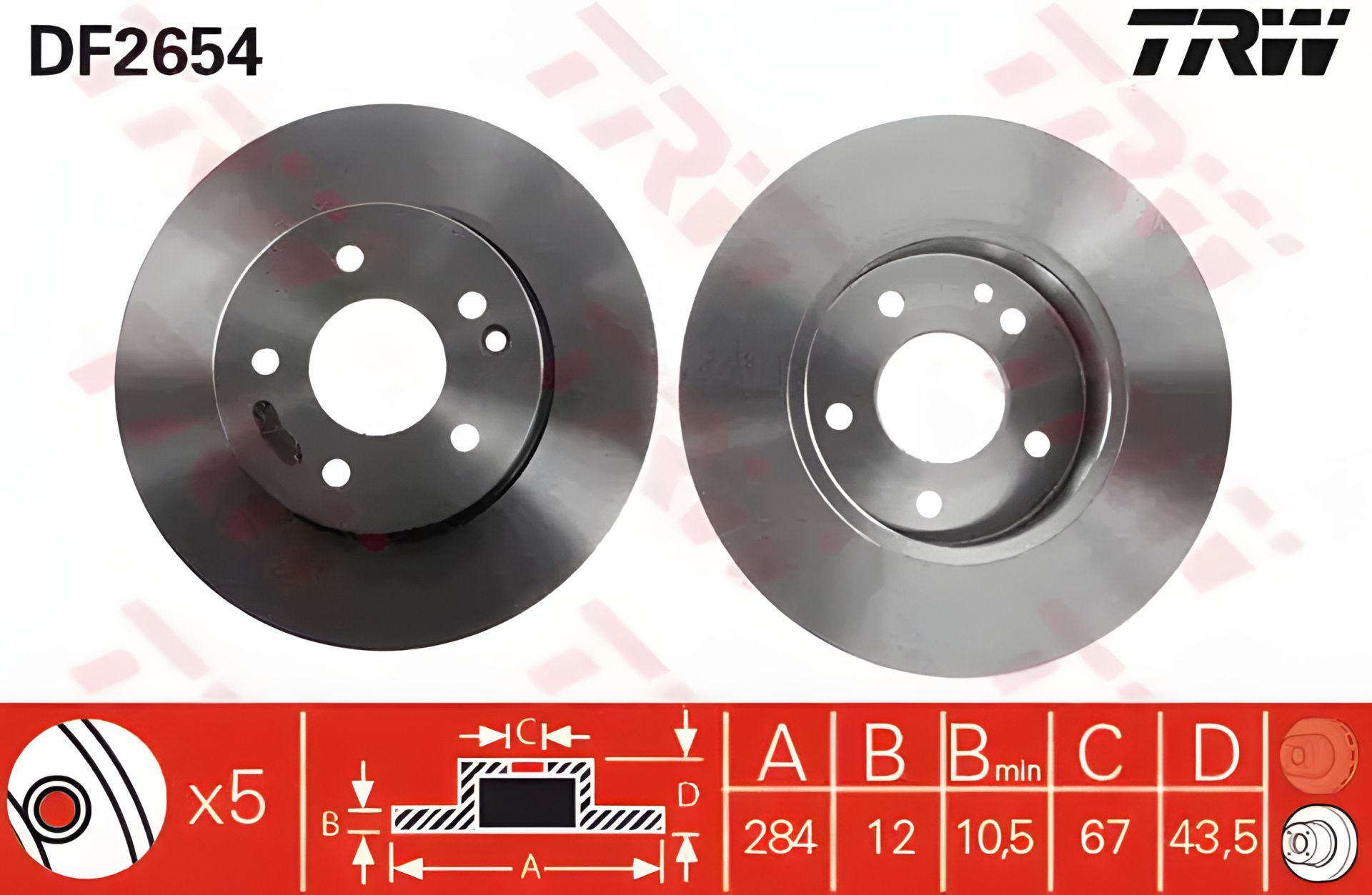 Тормозной диск (1 шт) для MERCEDES C180/C200/C220/C250, TRW (DF2654)