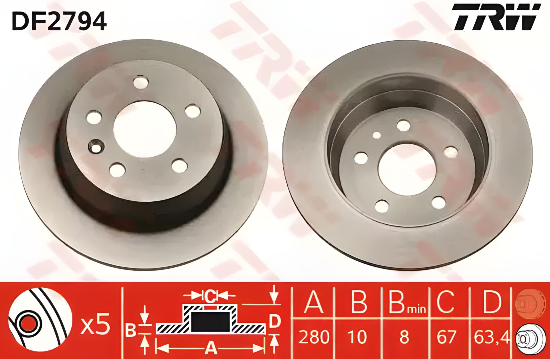 Тормозной диск для MERCEDES V200/V220/V230/V280/Vito, TRW (DF2794)